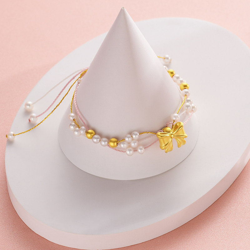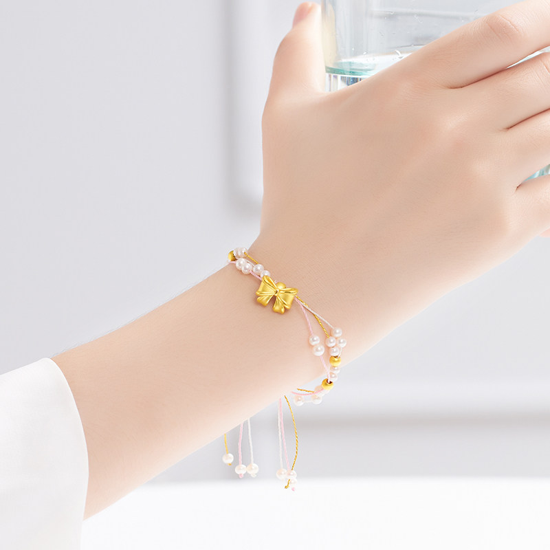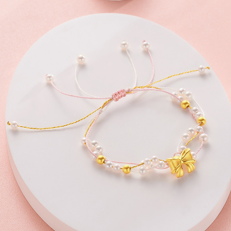Acer, золотой браслет с бантиком из жемчуга для друга, 3D, подарок для девушки
