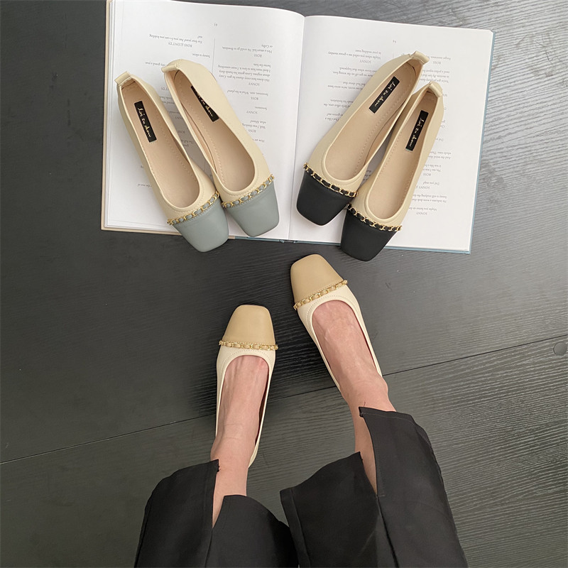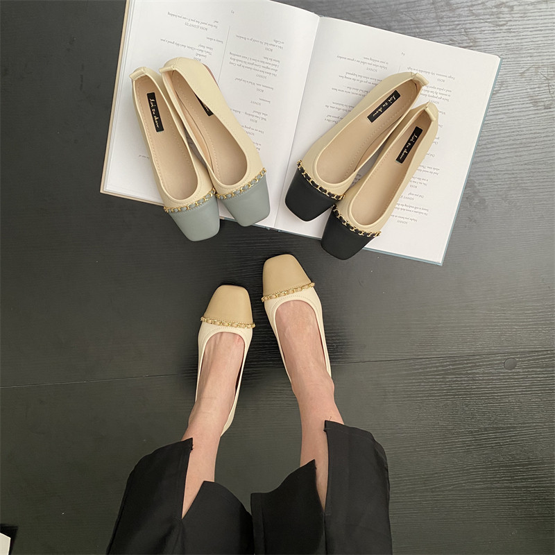 Цепь, демисезонная обувь с низким вырезом, в стиле Шанель, мягкая подошва, модель весна/осень 2024 года, тренд сезона