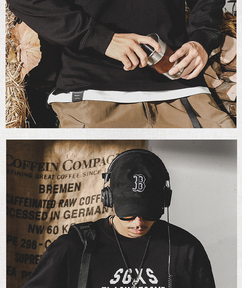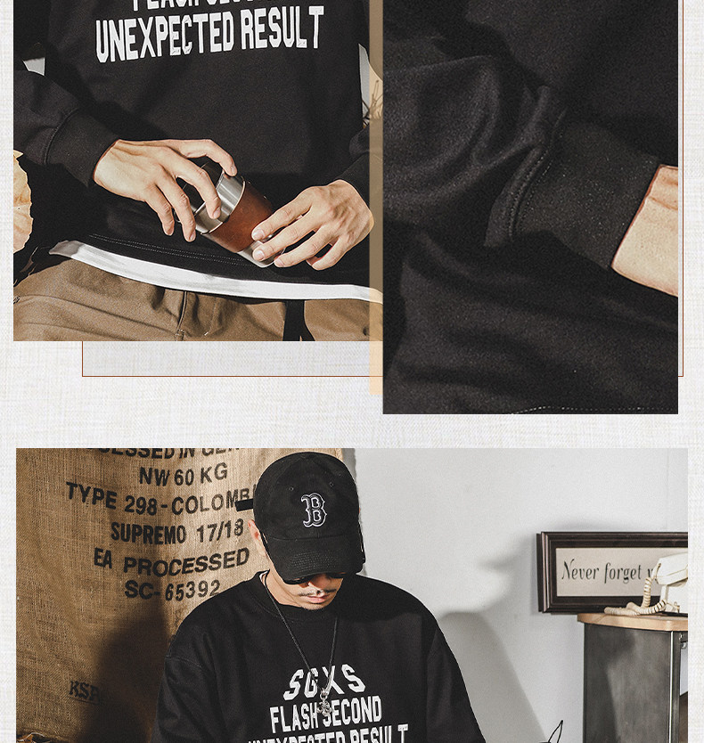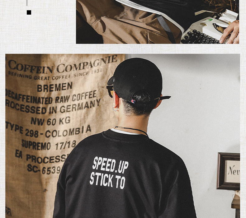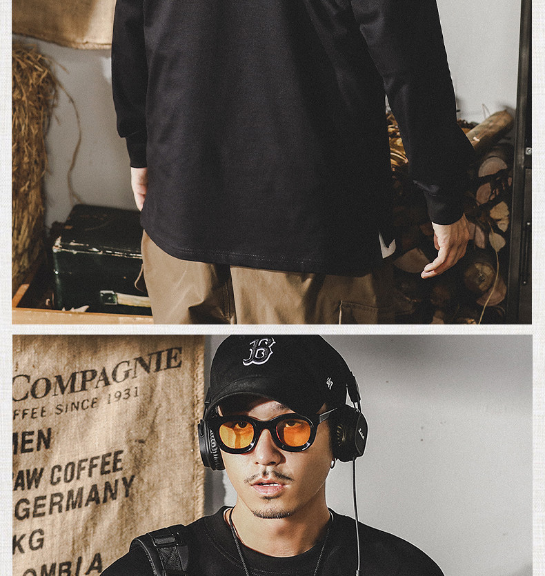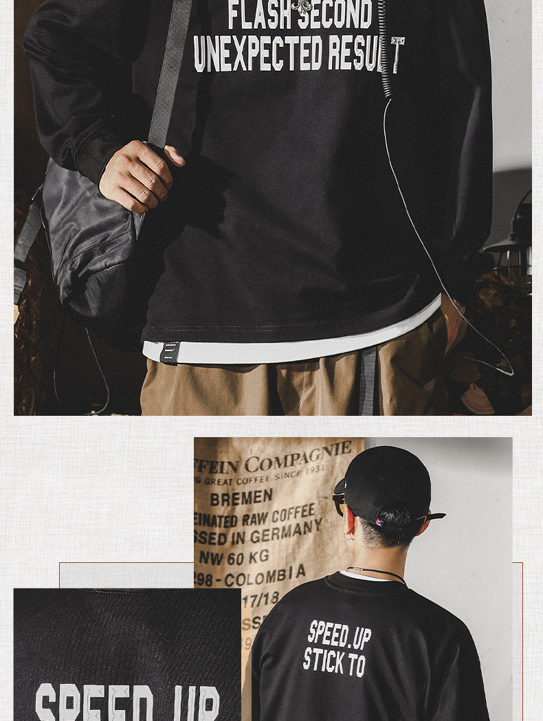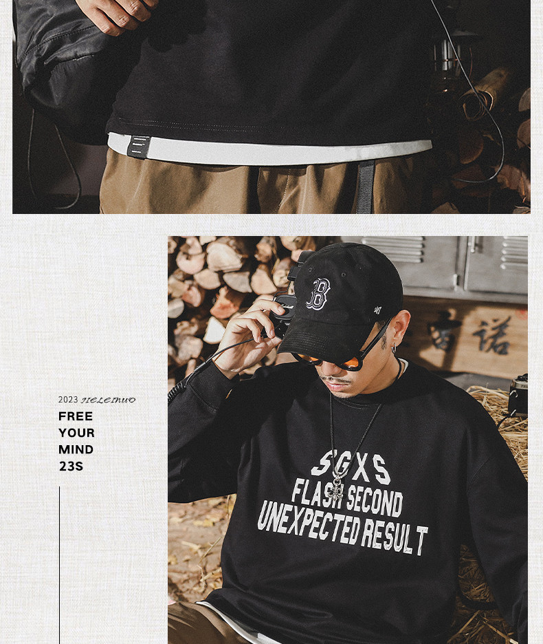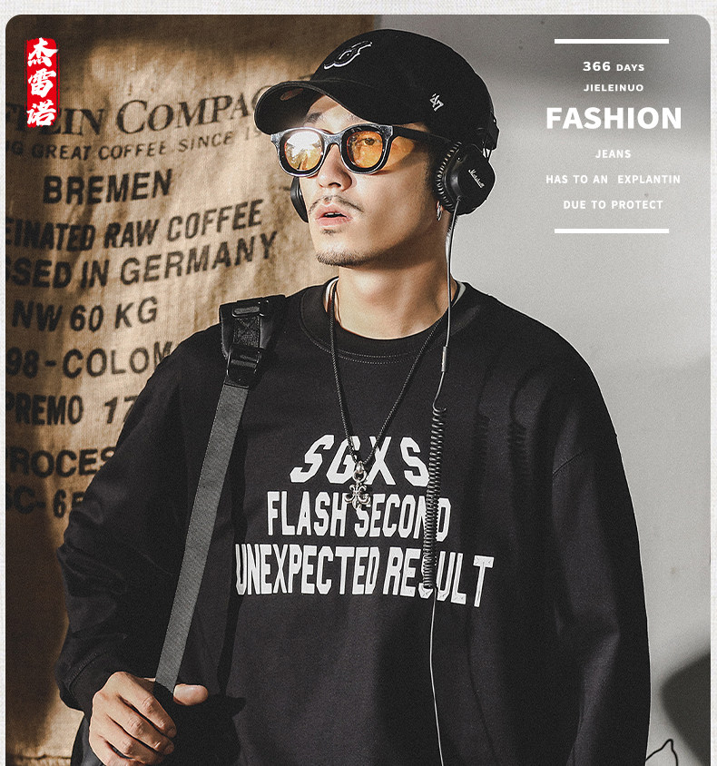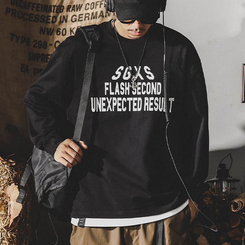 Tide, хлопковая мужская утепленный лонгслив, в американском стиле, 2024 года, оверсайз, осенний