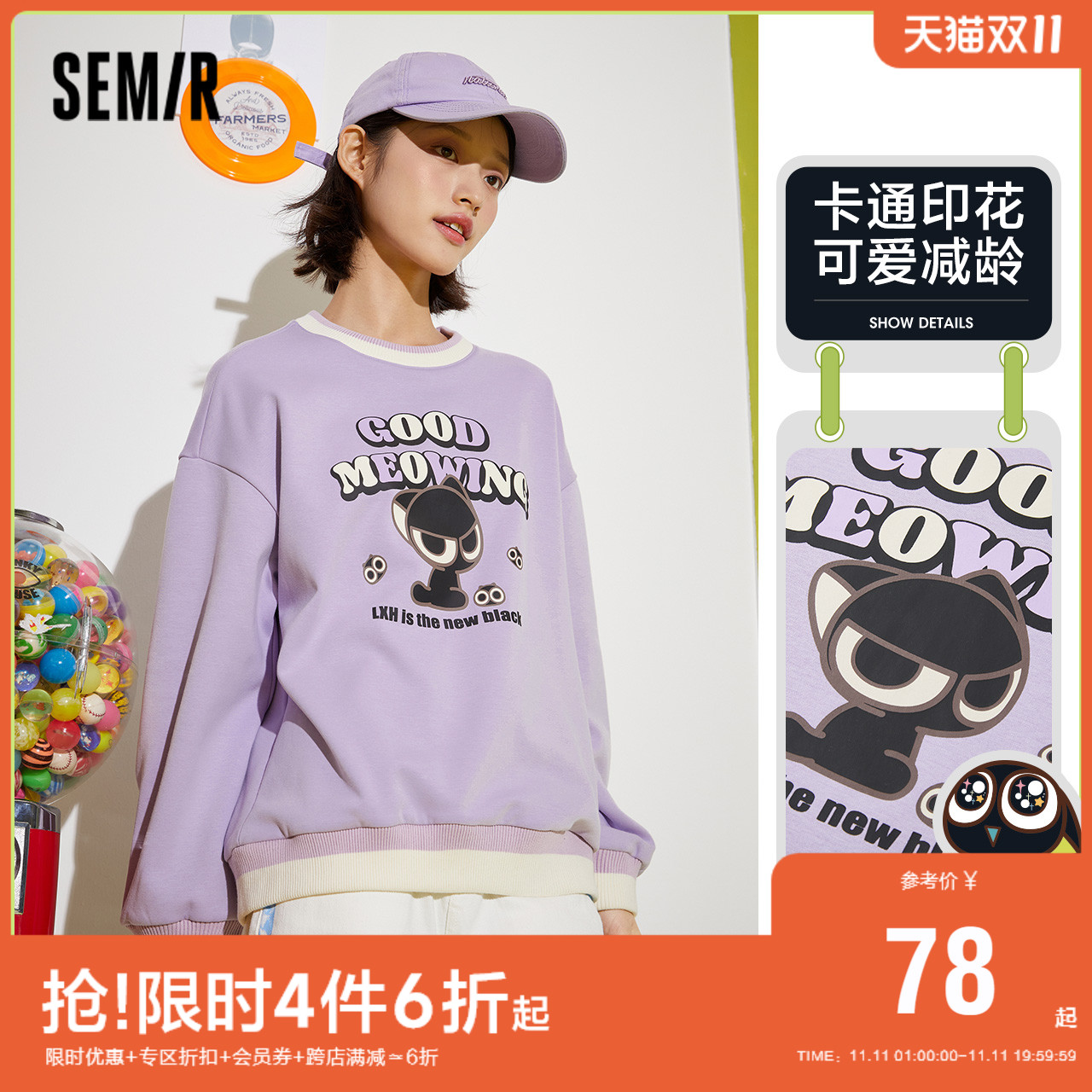 Semir, мультяшная зимняя флисовая трикотажная толстовка, круглый воротник, 2022, оверсайз