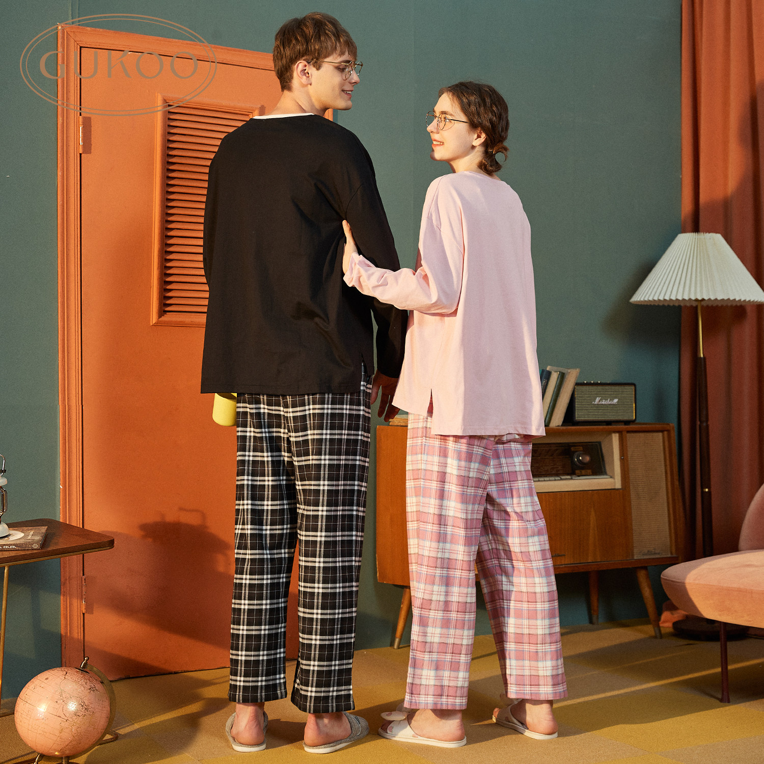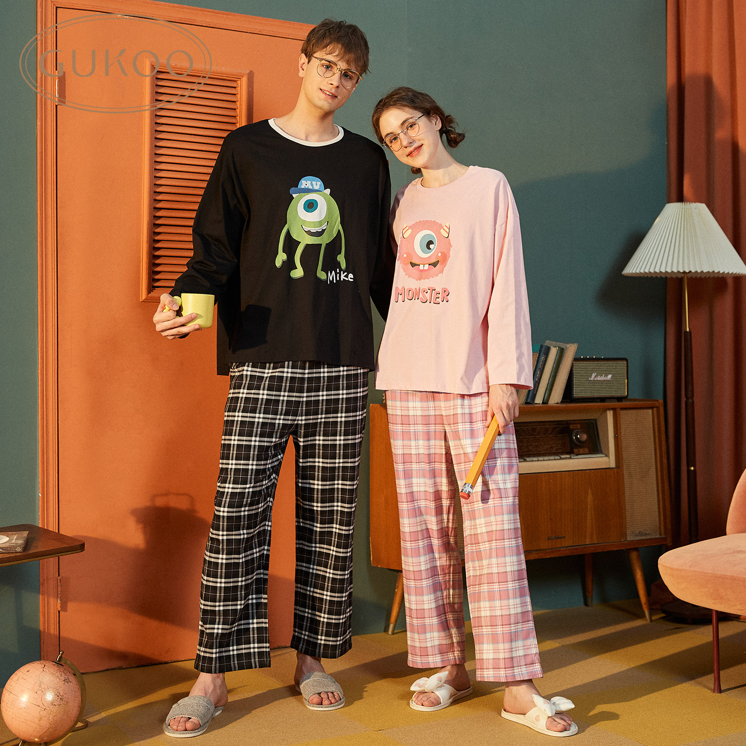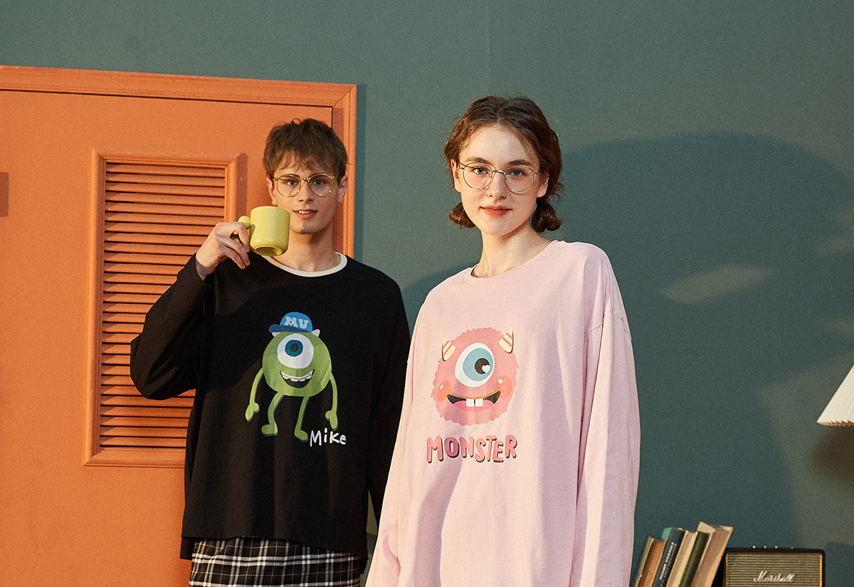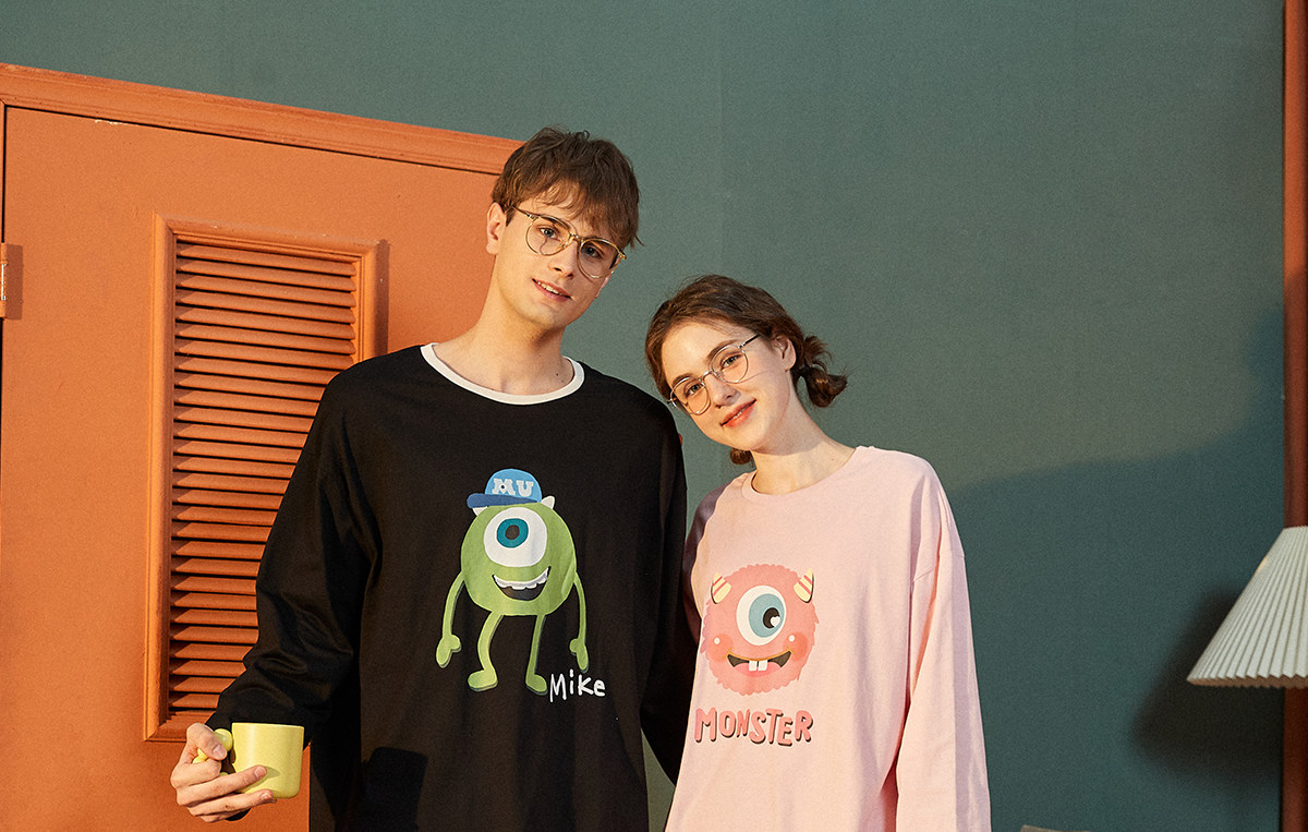 Демисезонная осенняя хлопковая пижама для влюбленных, комплект