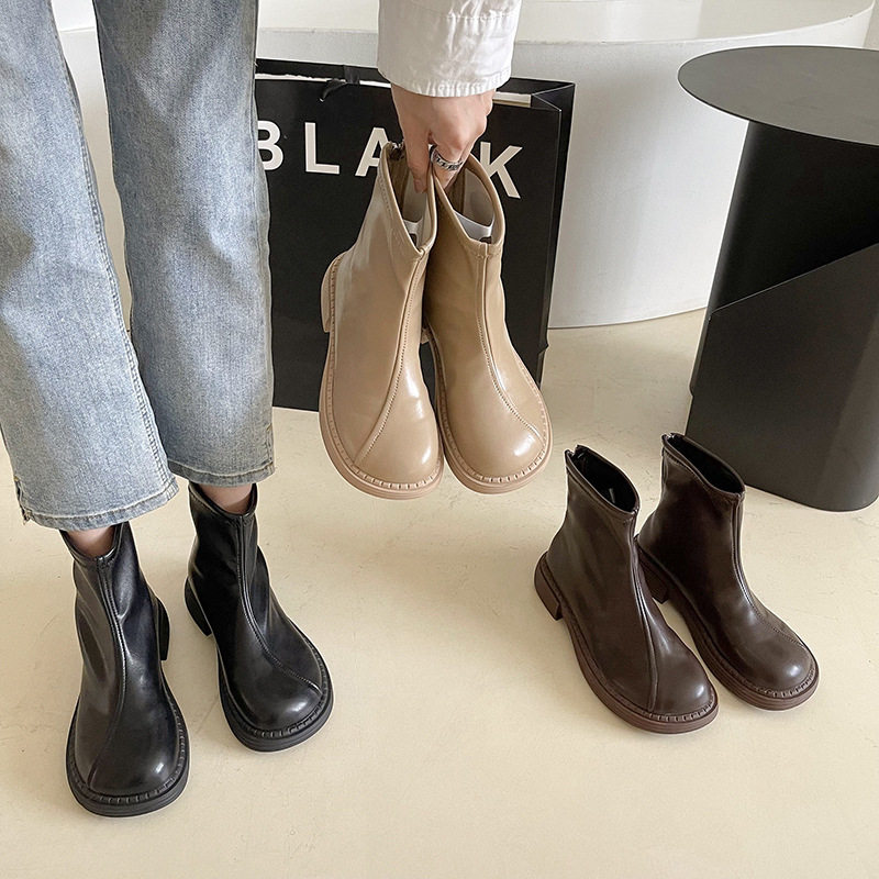 Tide, ретро короткие сапоги в английском стиле, универсальная осенняя подходит с юбкой, в британском стиле, коллекция 2022