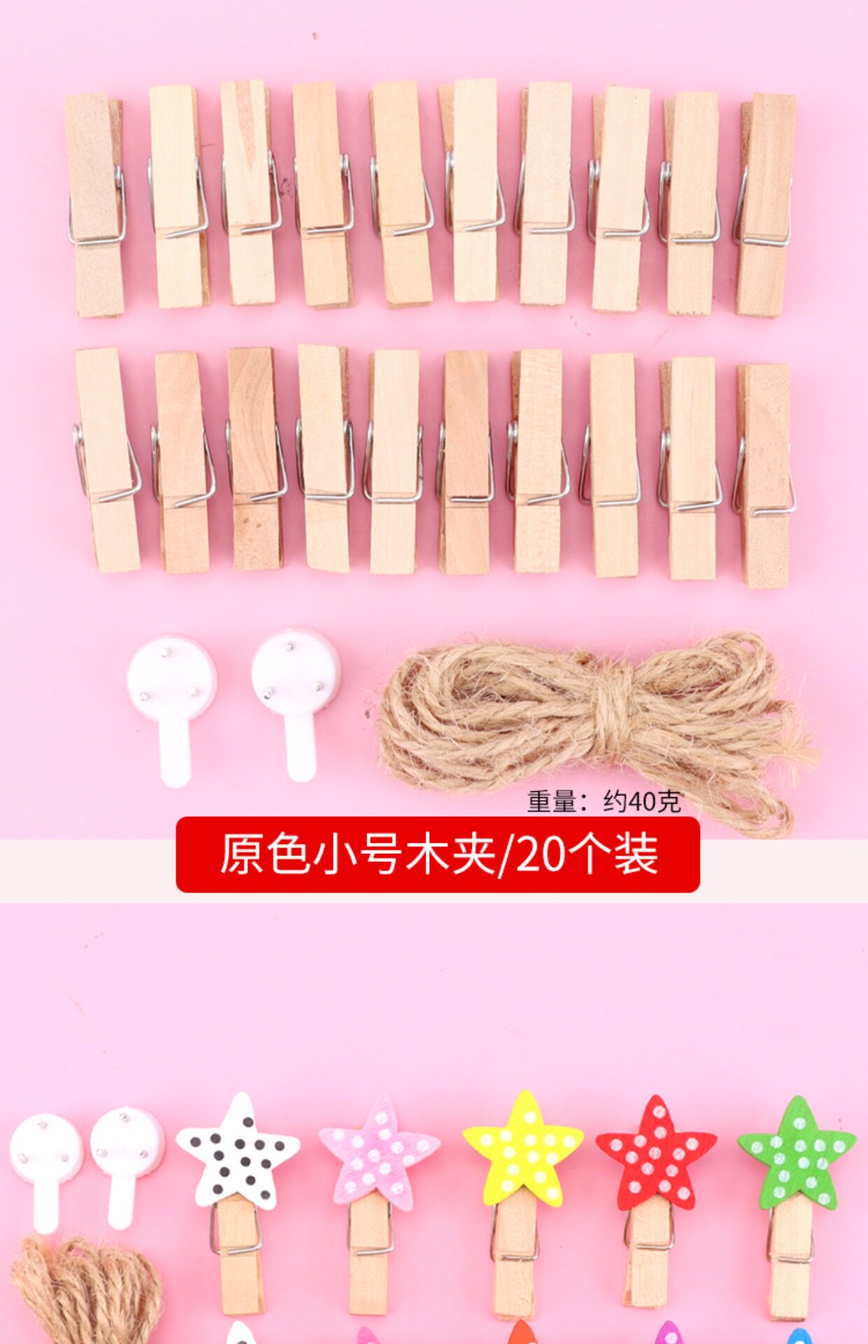 - 25 цветных больших деревянных зажимов 25 установок