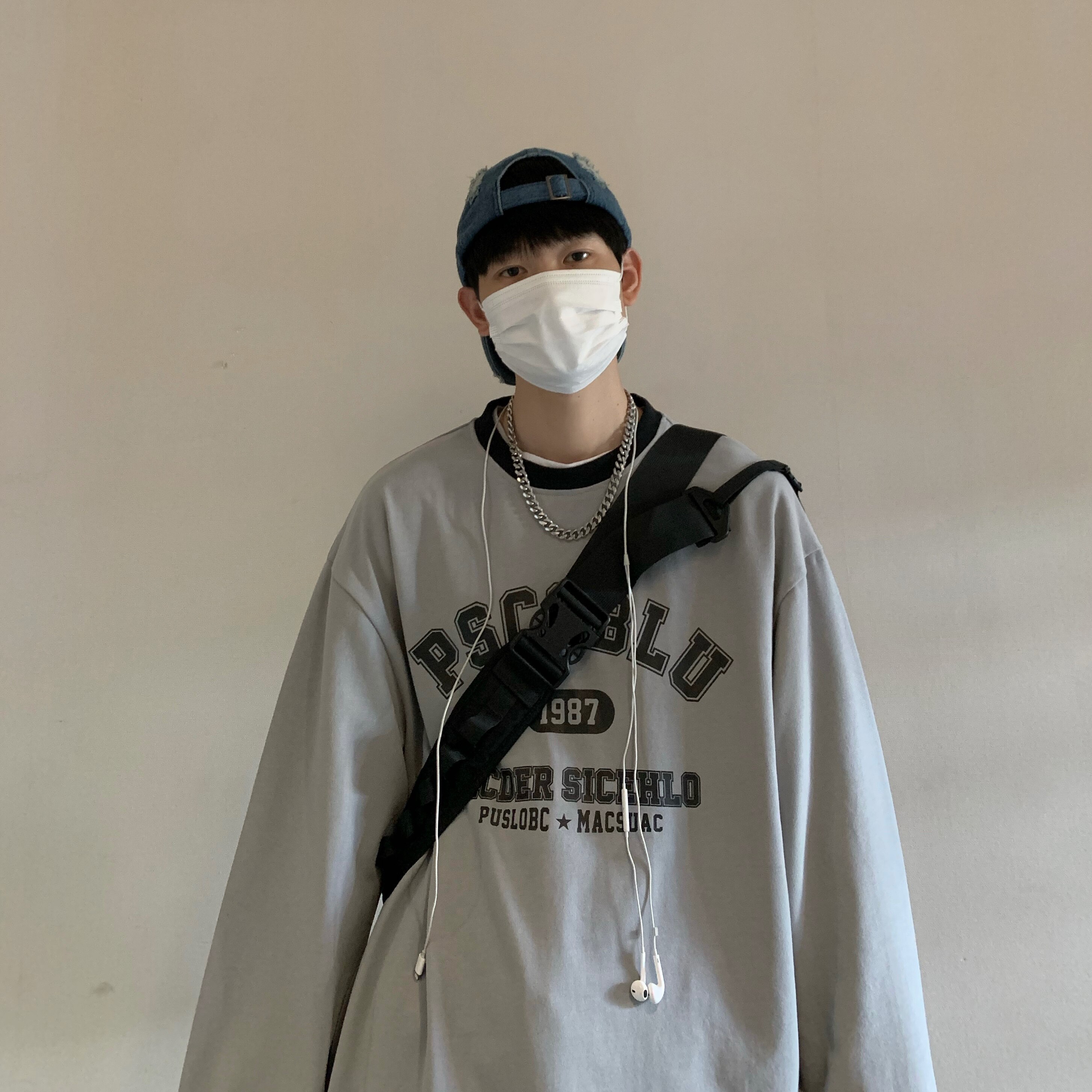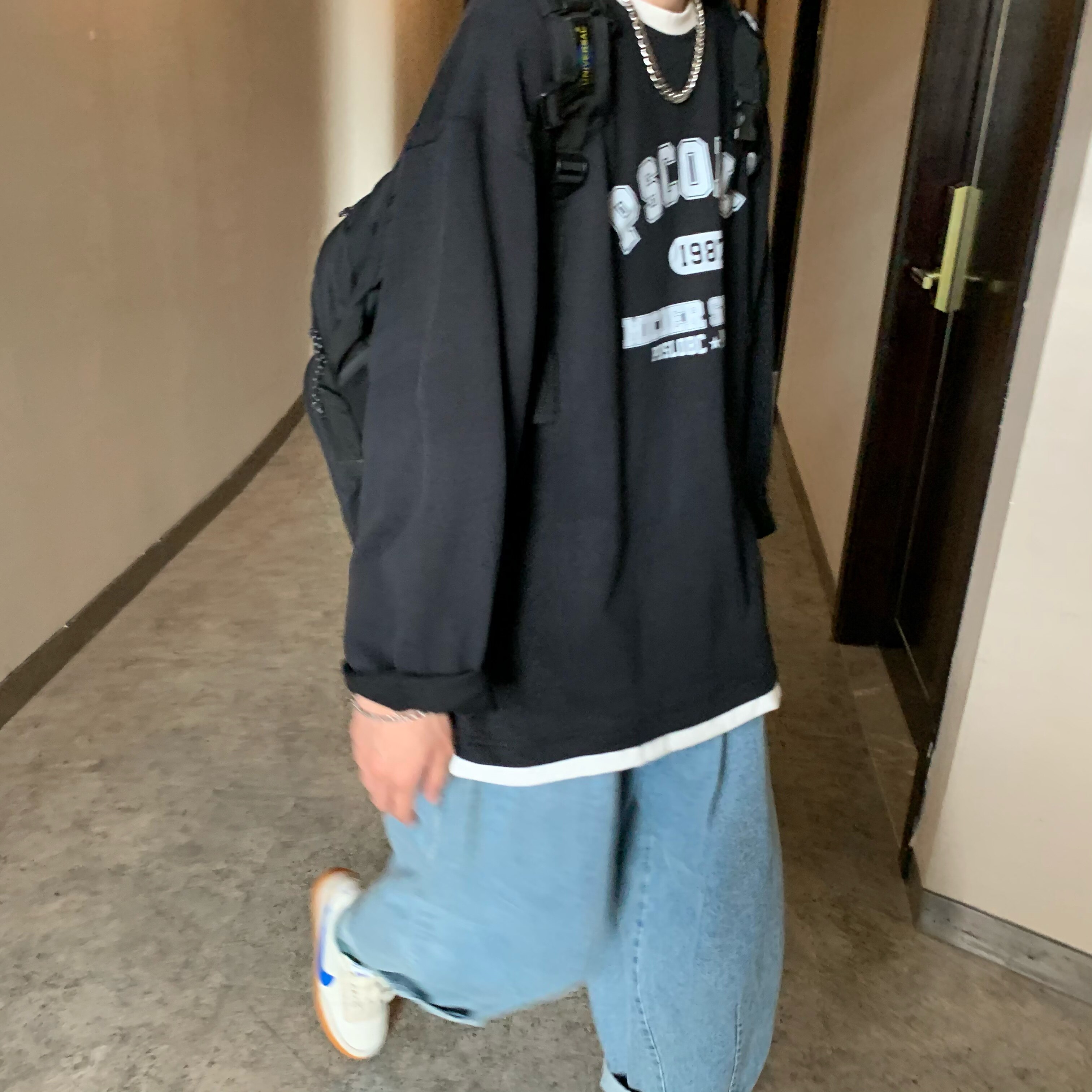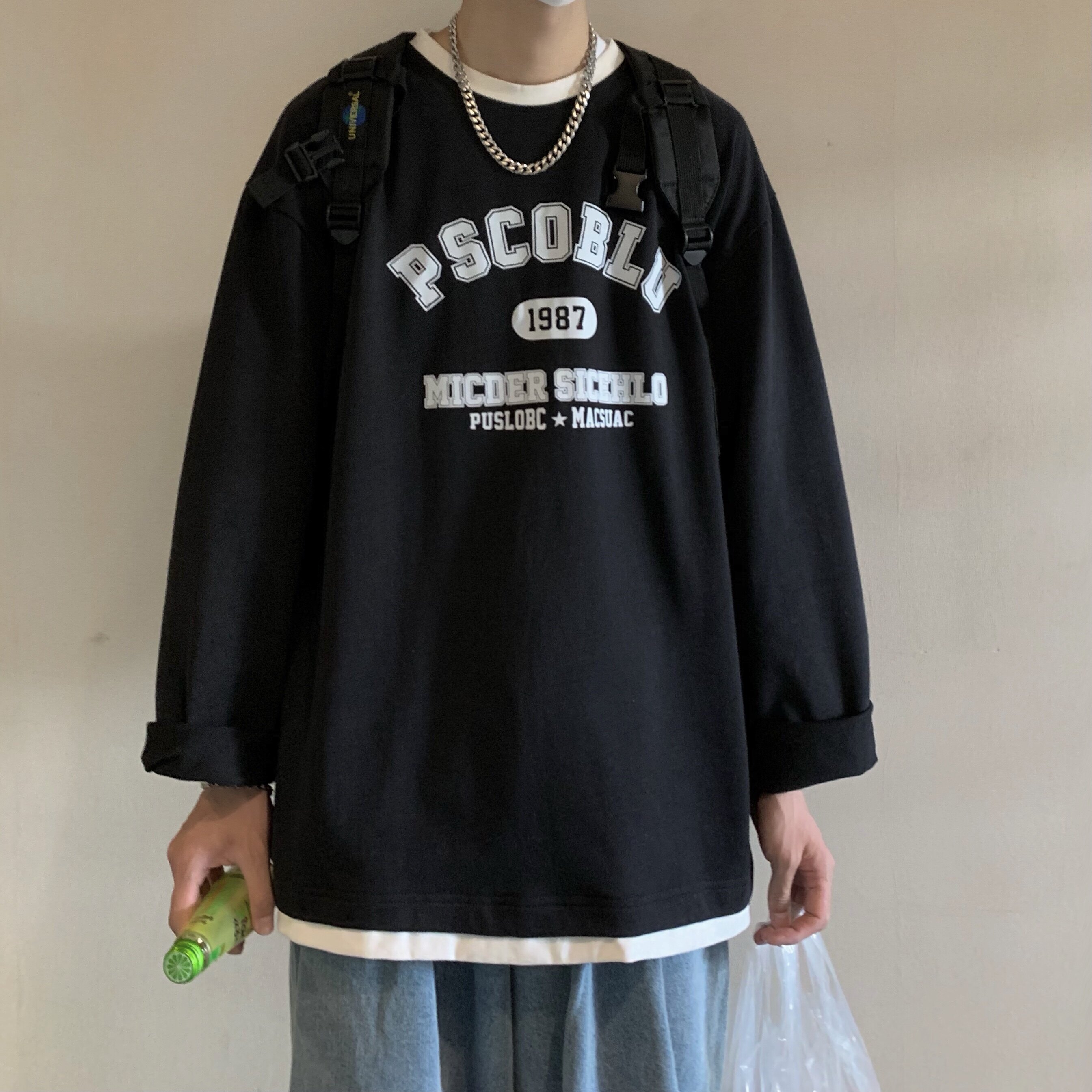 Фальшивая двухсекционная национальная тенденция американская футболка с длинными рукавами мужская высокая улица Хип-хоп