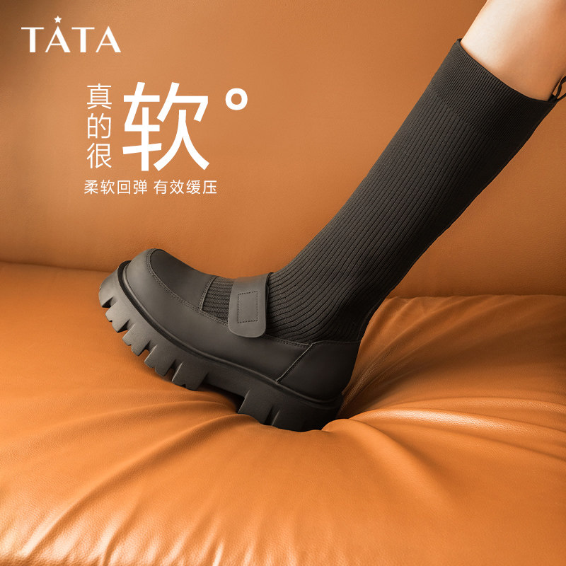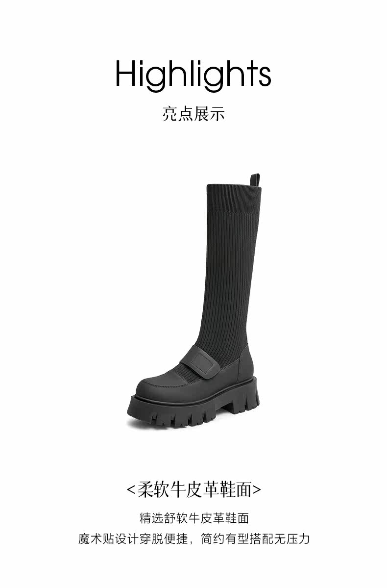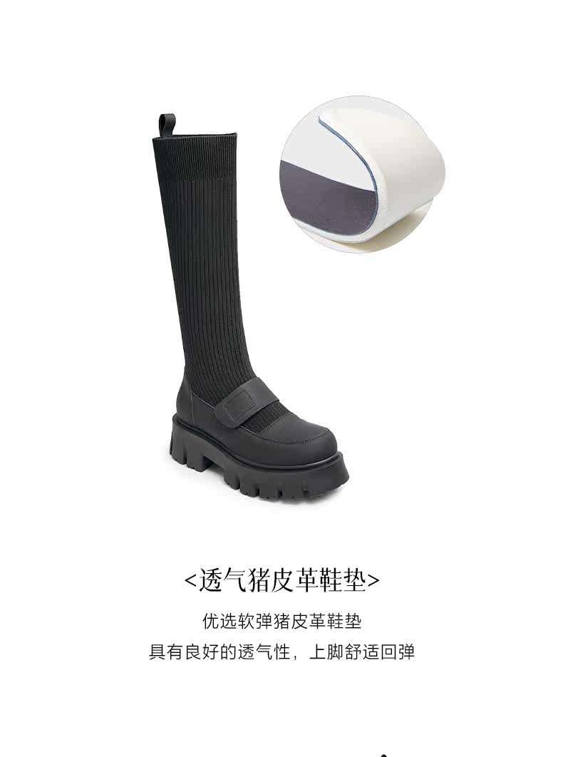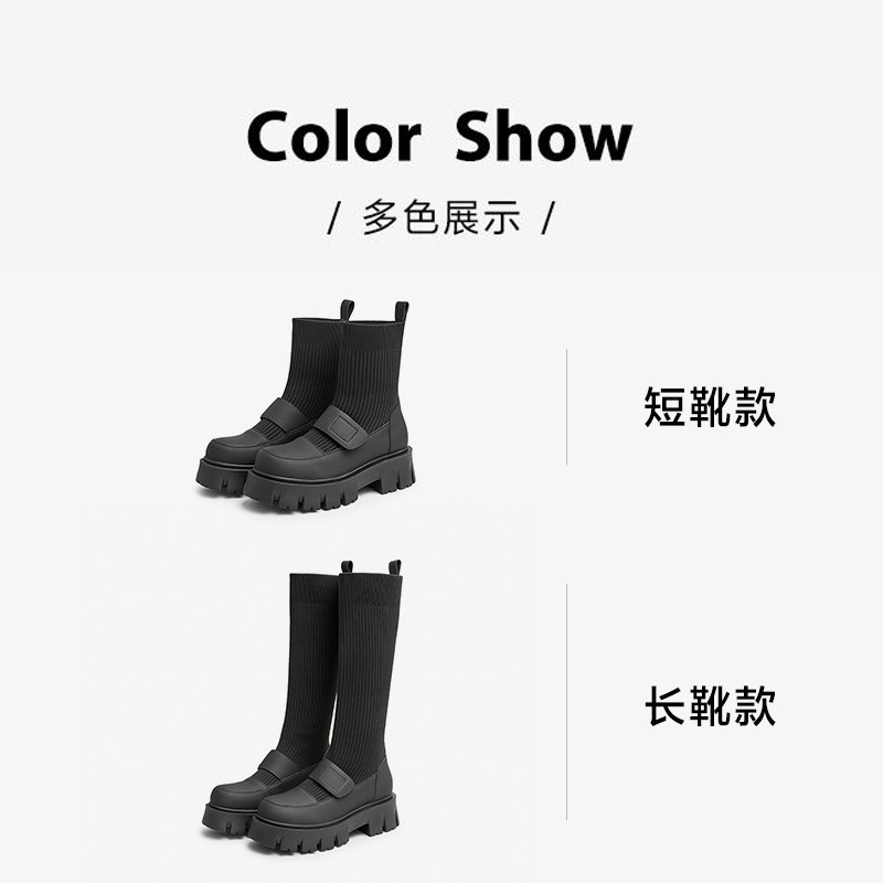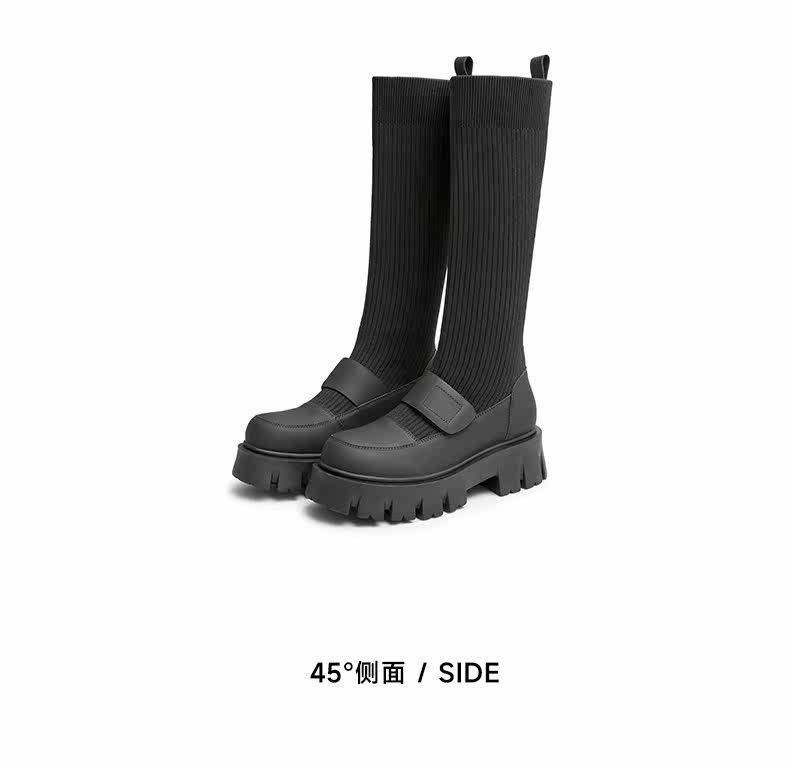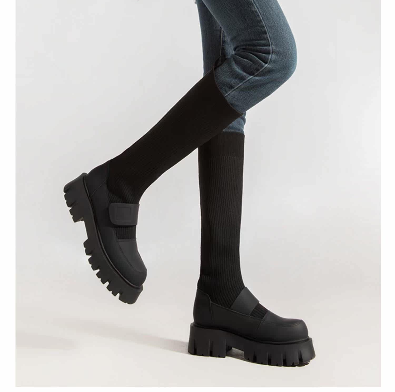 Трикотажные высокие сапоги на платформе, ретро носки, демисезонная удобная обувь