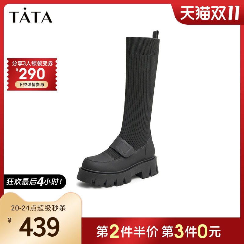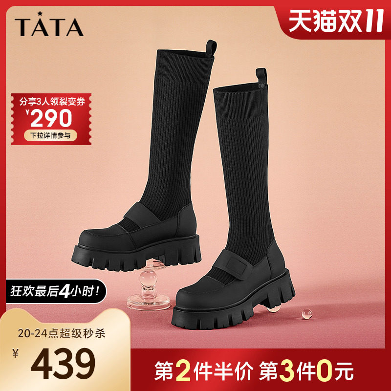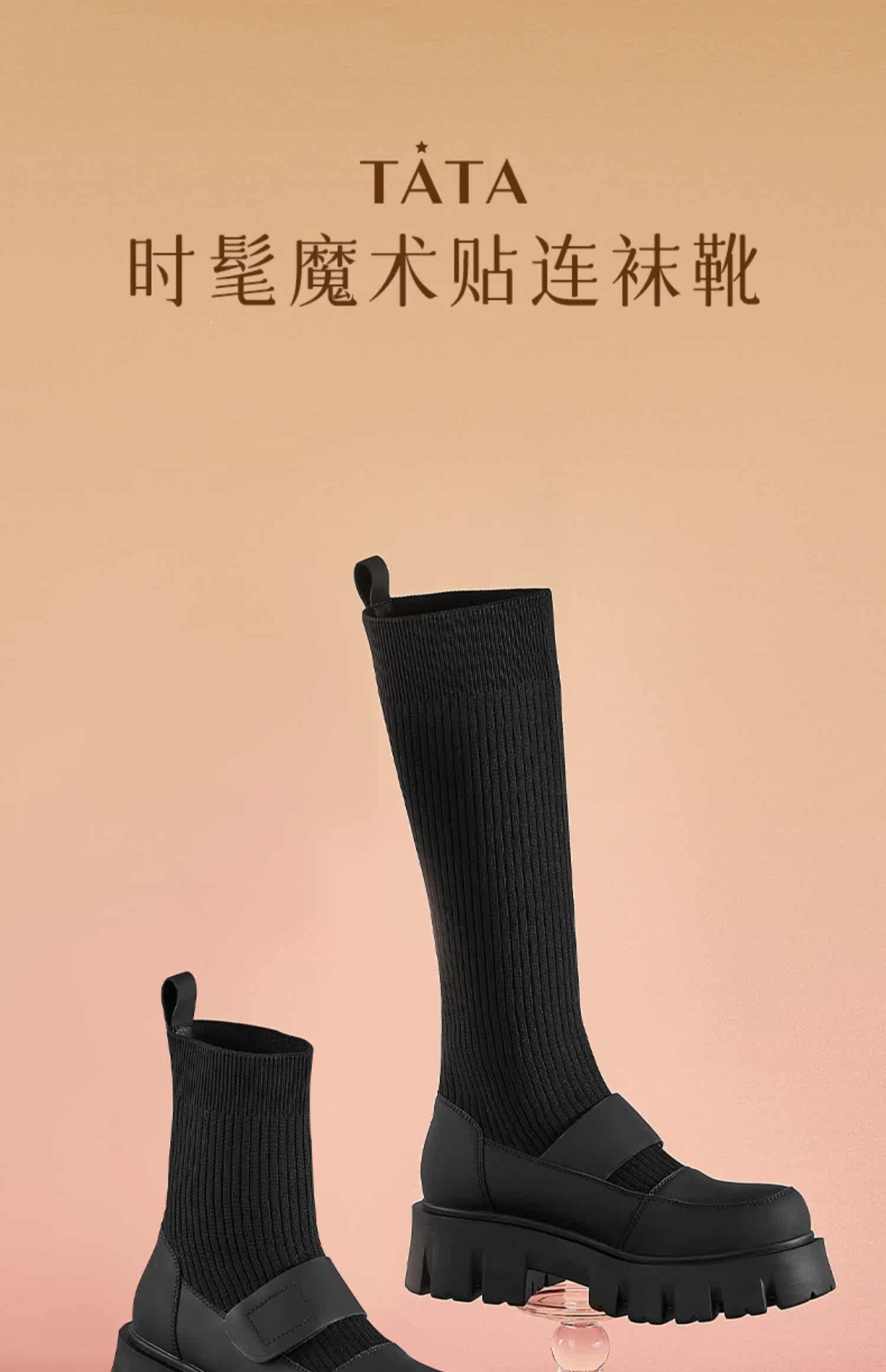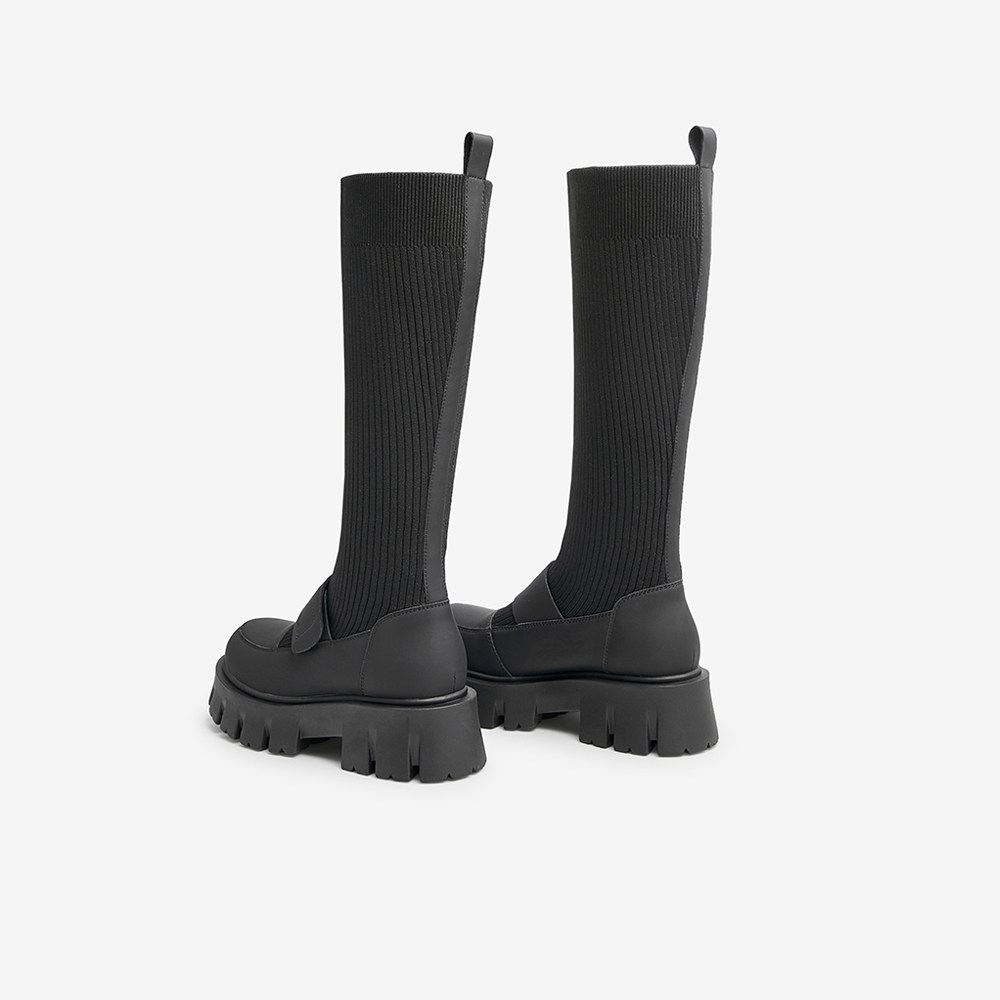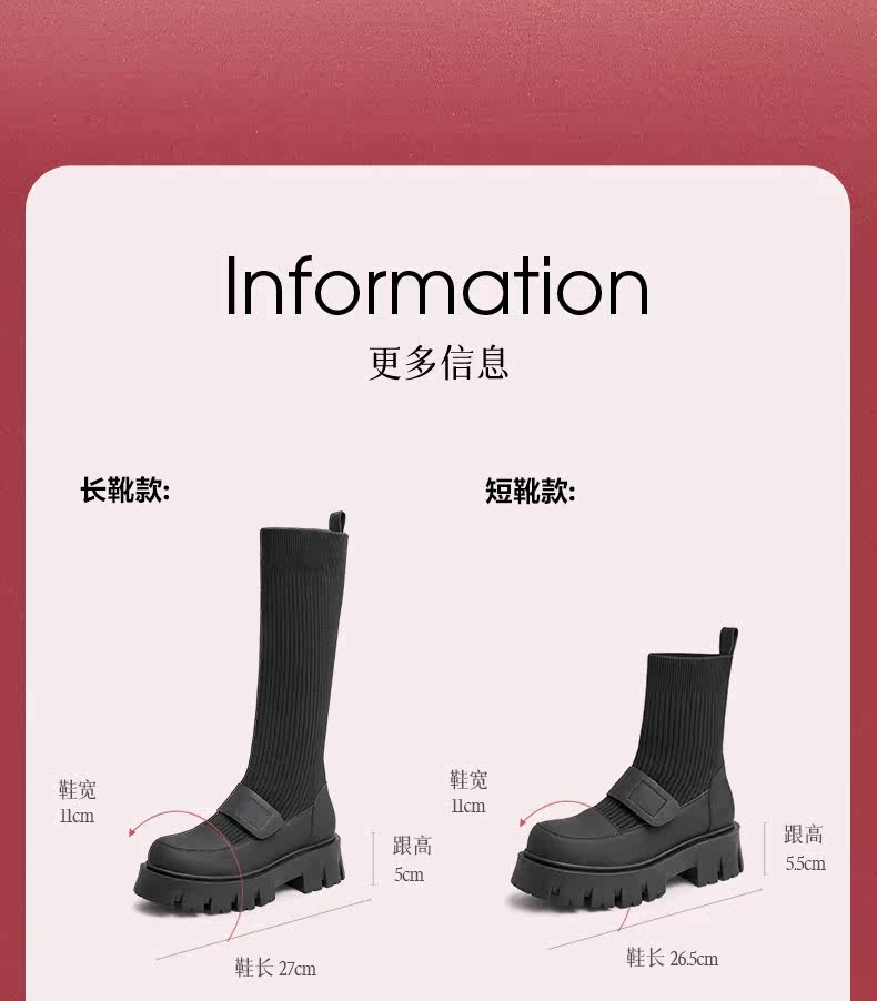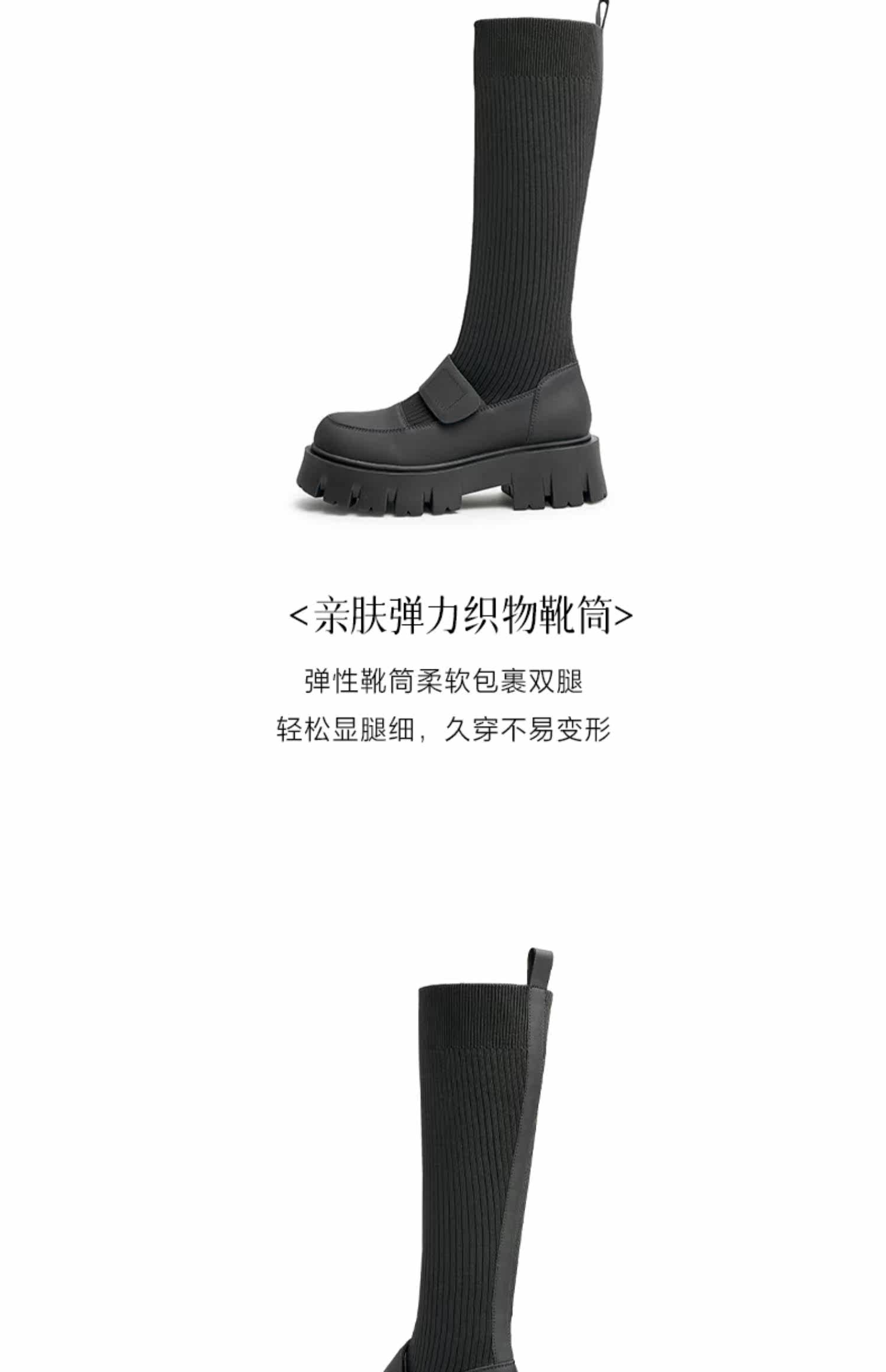 Трикотажные высокие сапоги на платформе, ретро носки, демисезонная удобная обувь