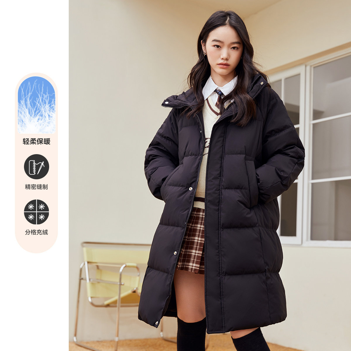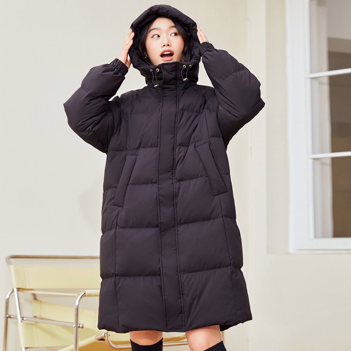 Демисезонный ветрозащитный пуховик с капюшоном, увеличенная толщина