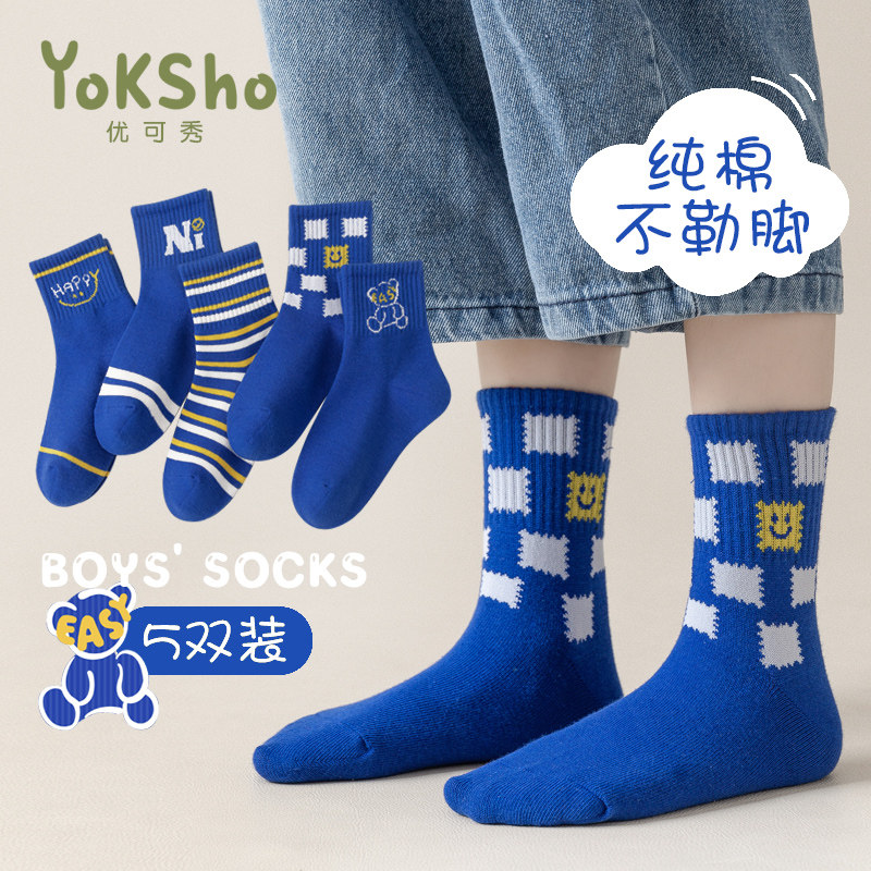 Осенние хлопковые носки для мальчиков, детские демисезонные тонкие гольфы, средней длины