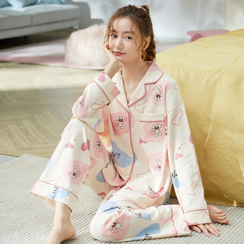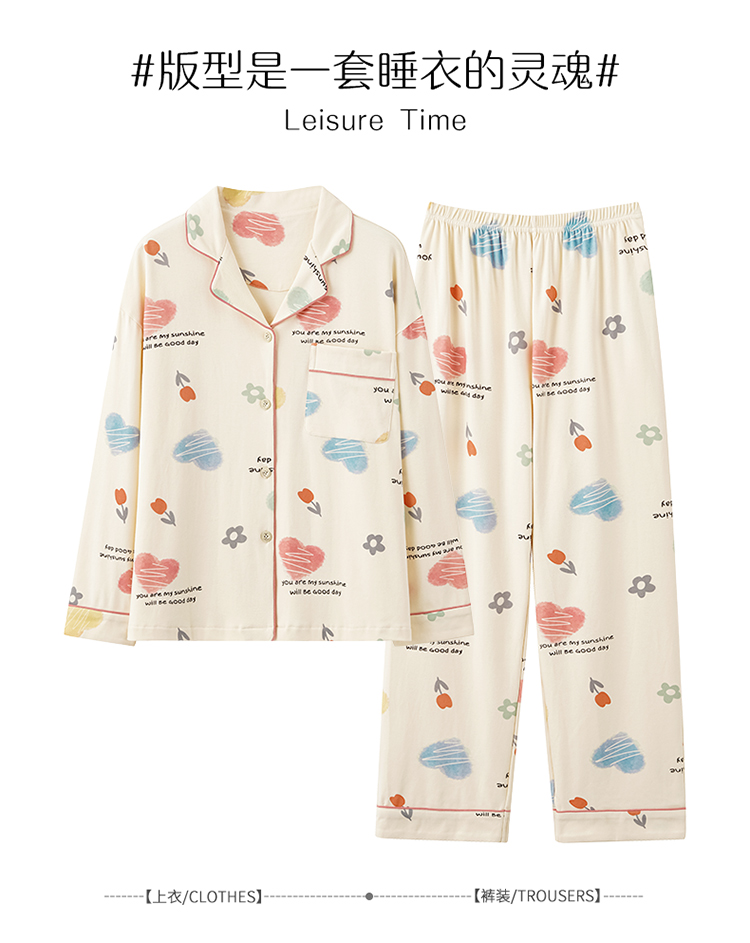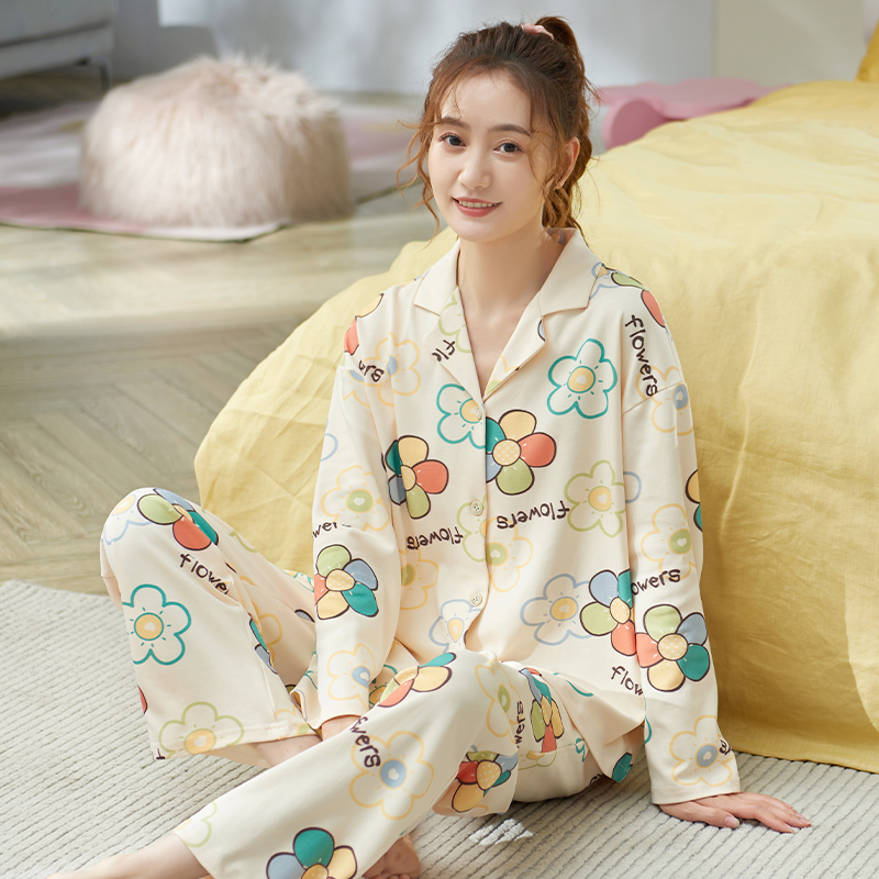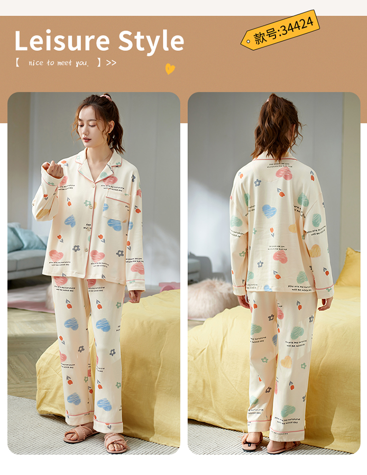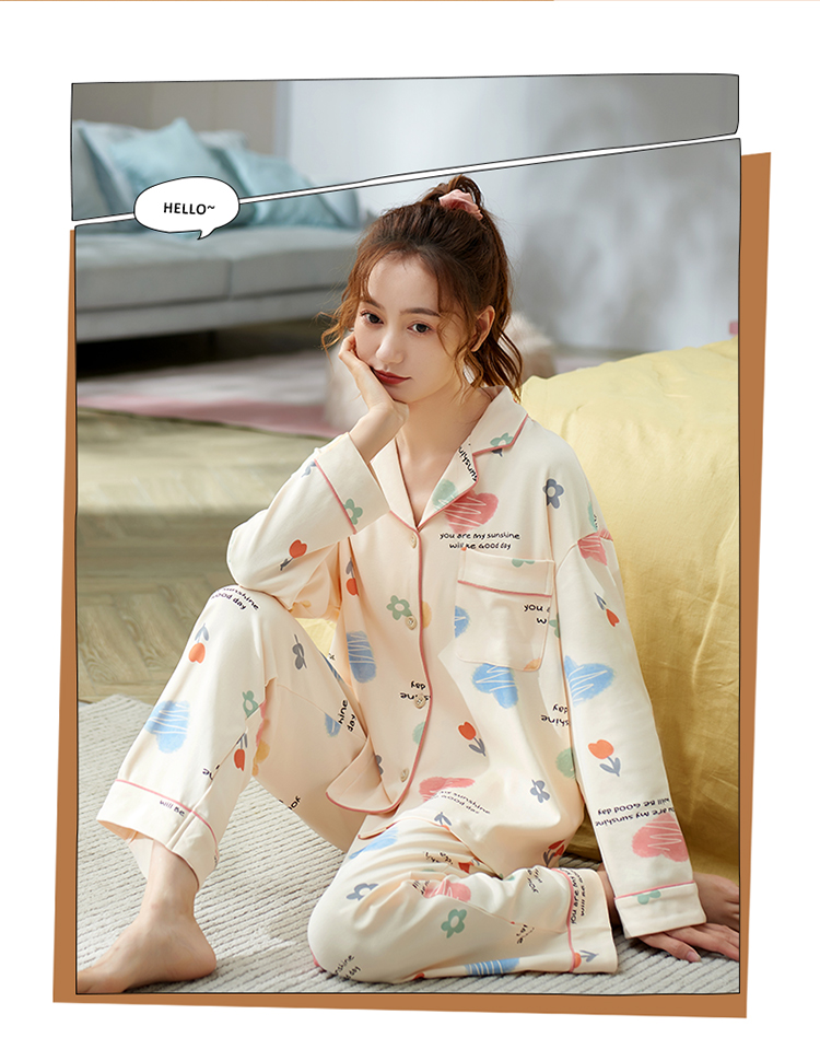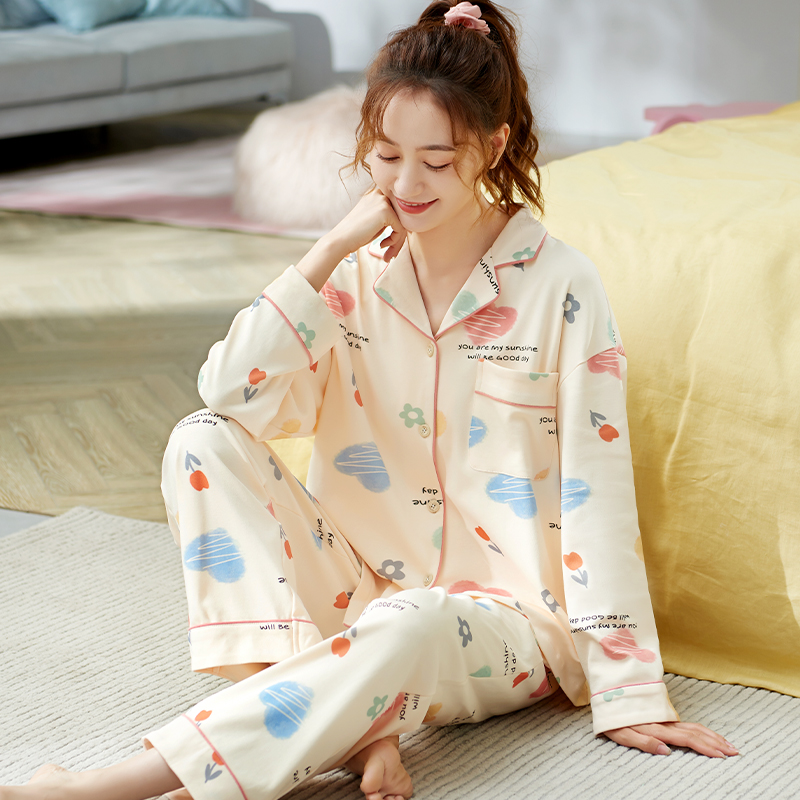 Осенняя пижама, хлопковый осенний милый лонгслив, коллекция 2022, большой размер