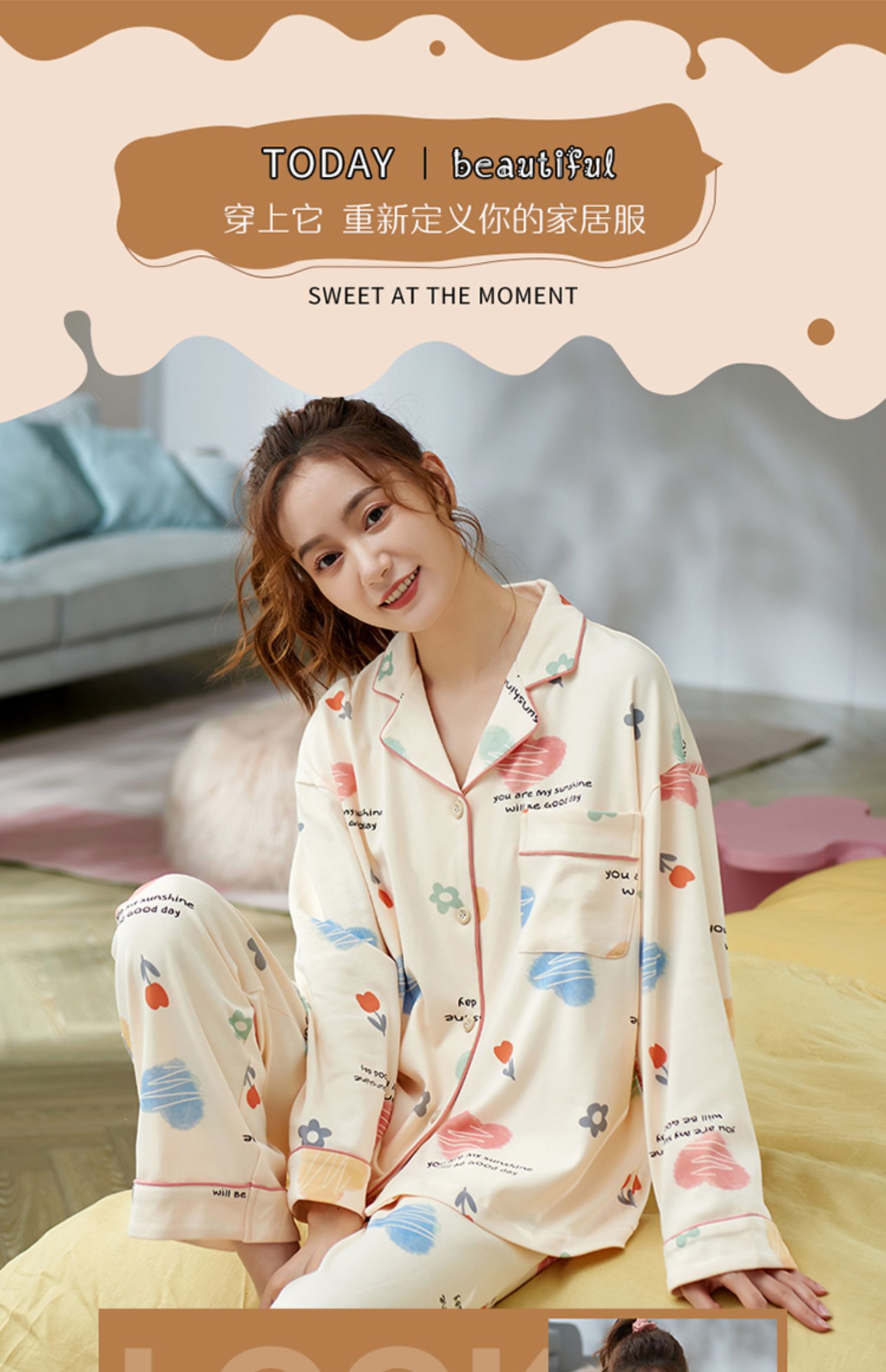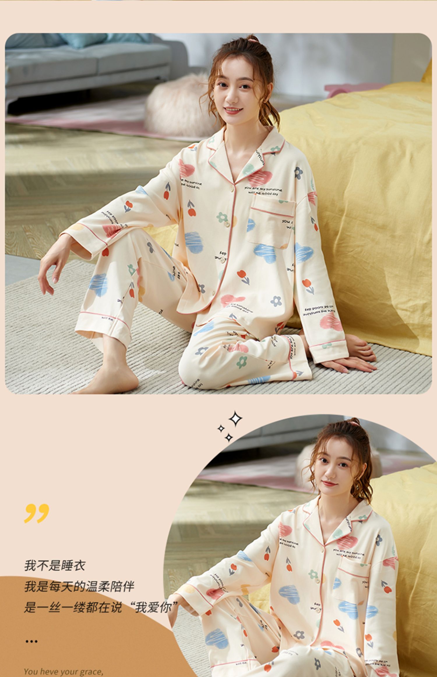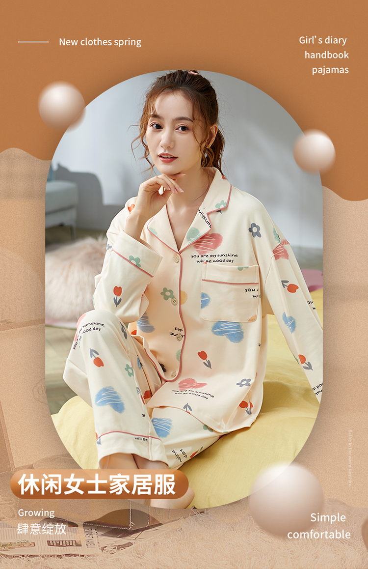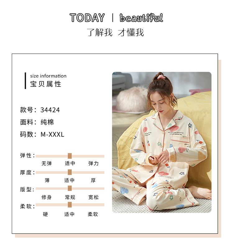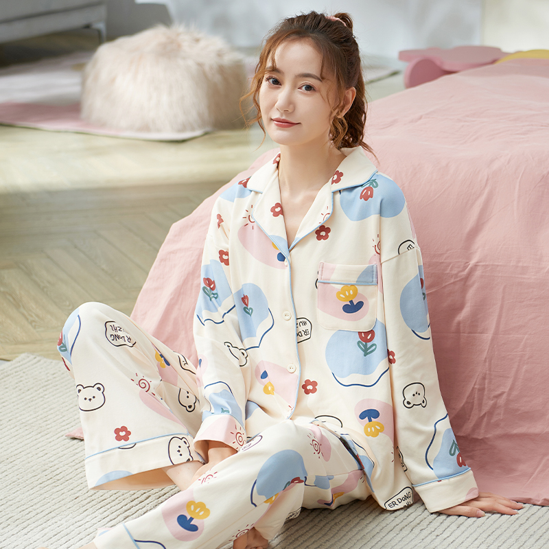 Осенняя пижама, хлопковый осенний милый лонгслив, коллекция 2022, большой размер