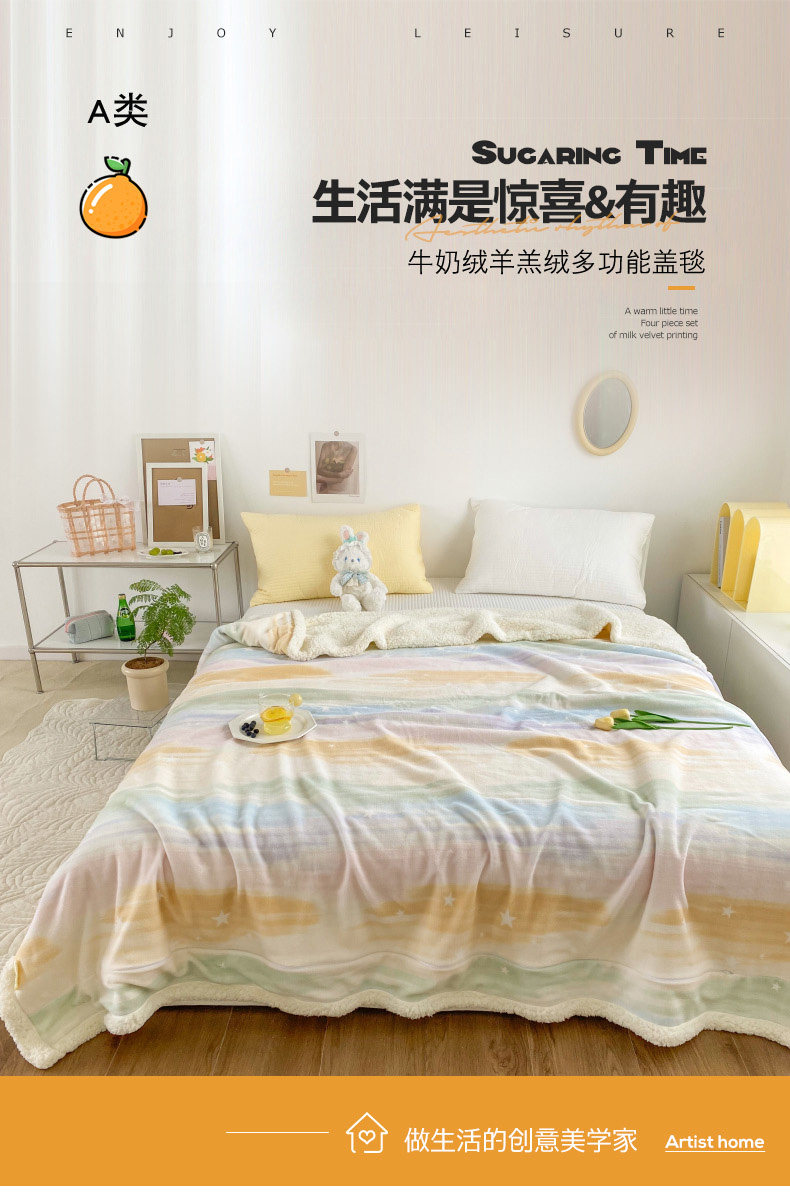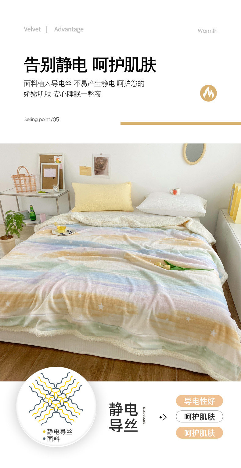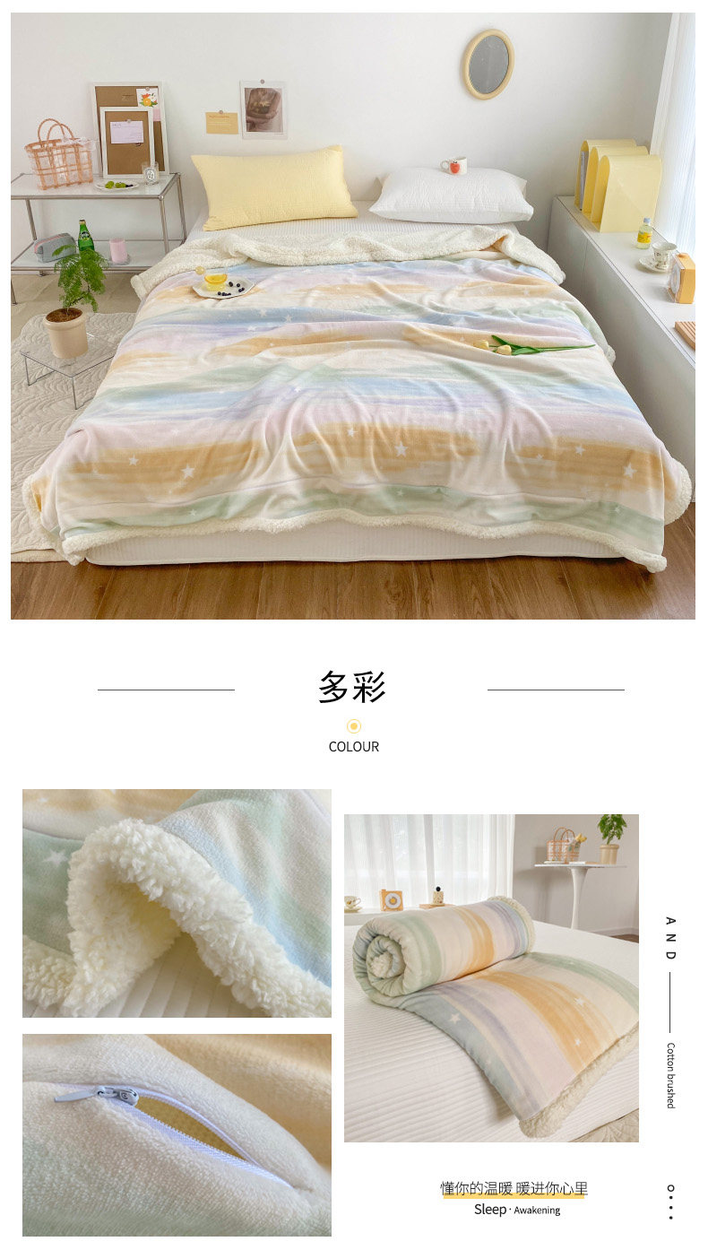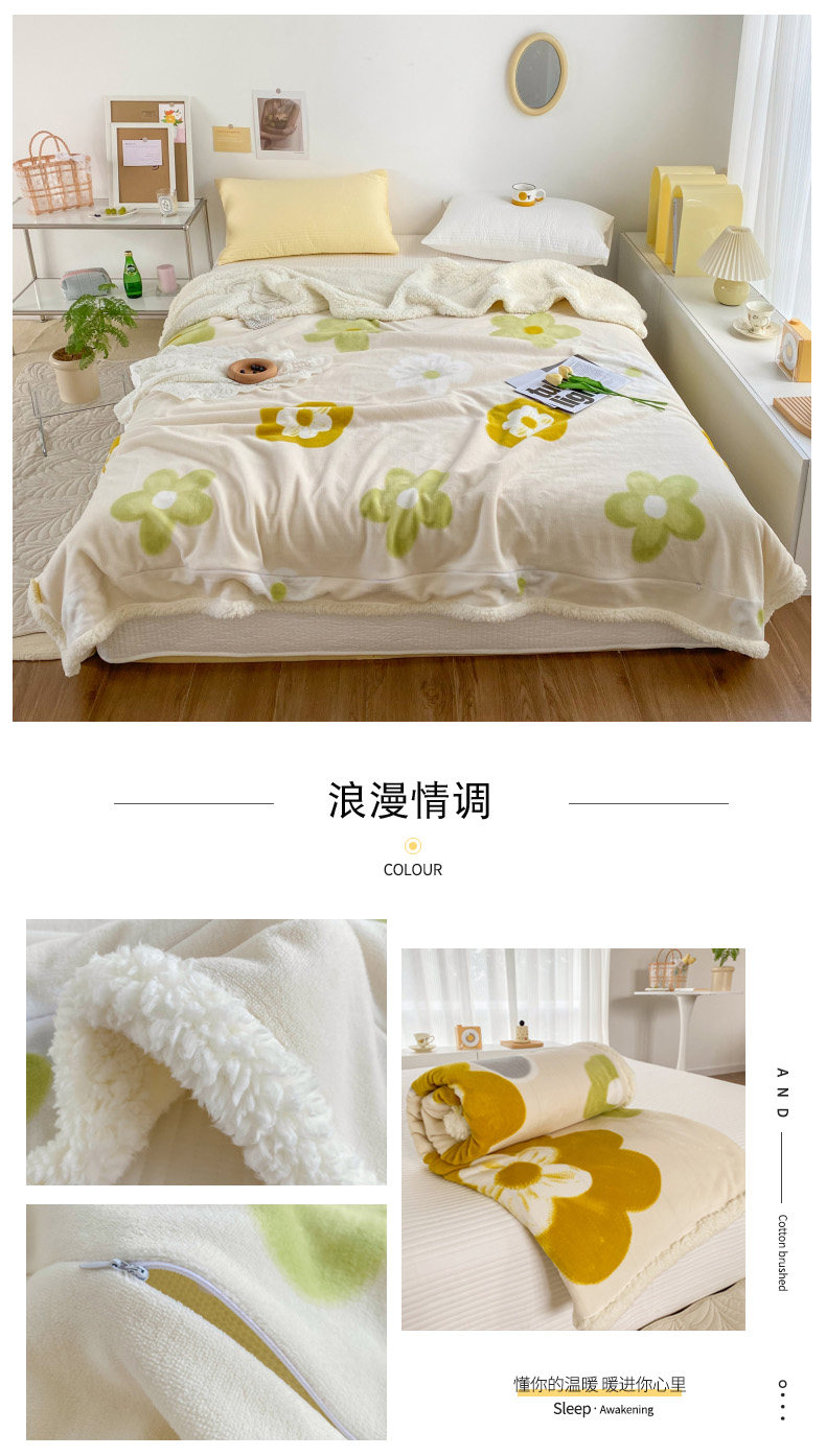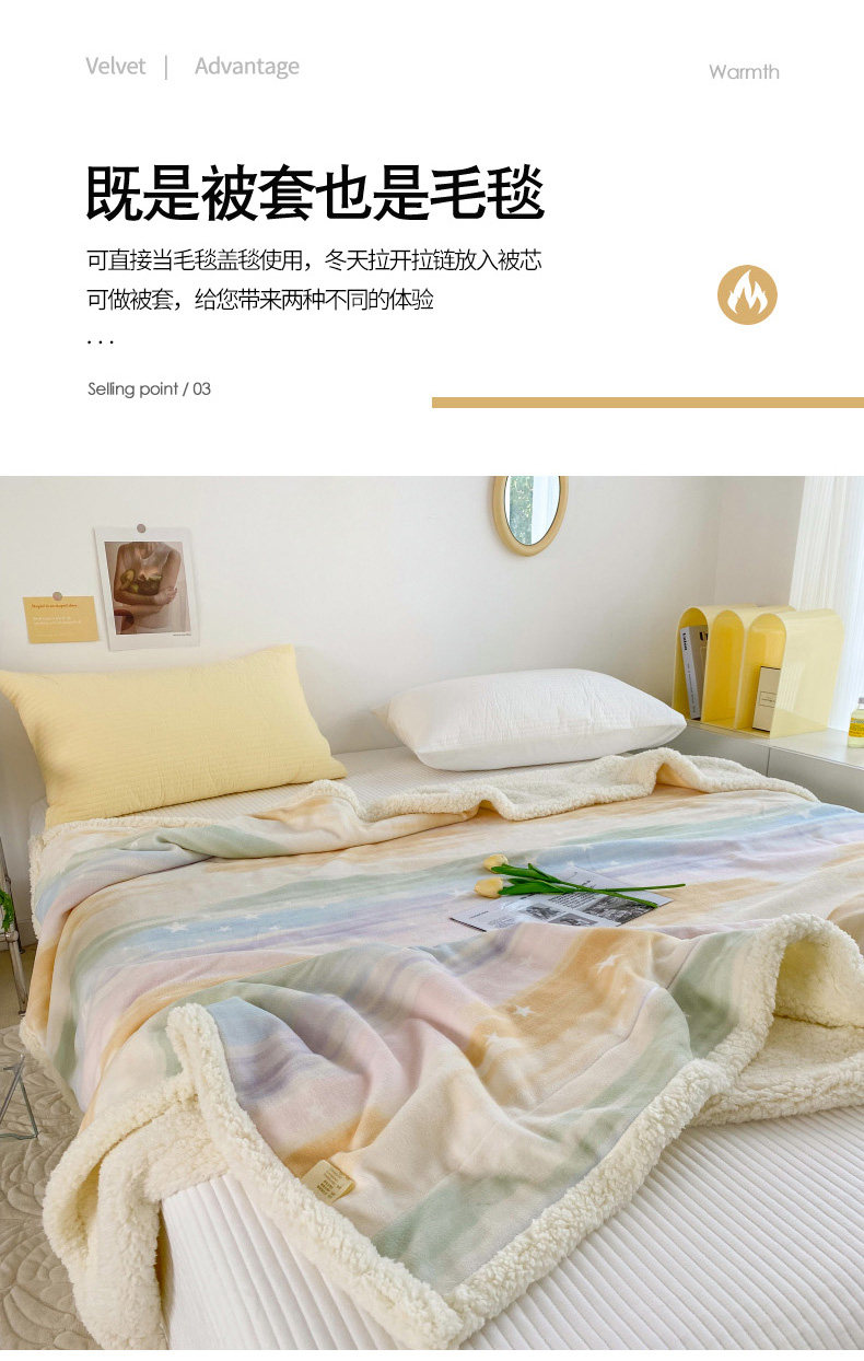 - Двойное одеяло 200x230см [двойной утолщенный молочный флис + овечий флис]