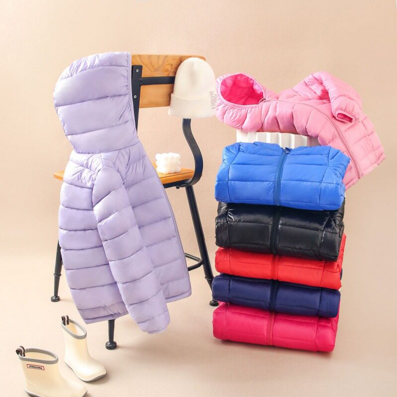 Демисезонный детский легкий и тонкий пуховик с пухом подходит для мужчин и женщин, куртка с капюшоном, подходит для подростков