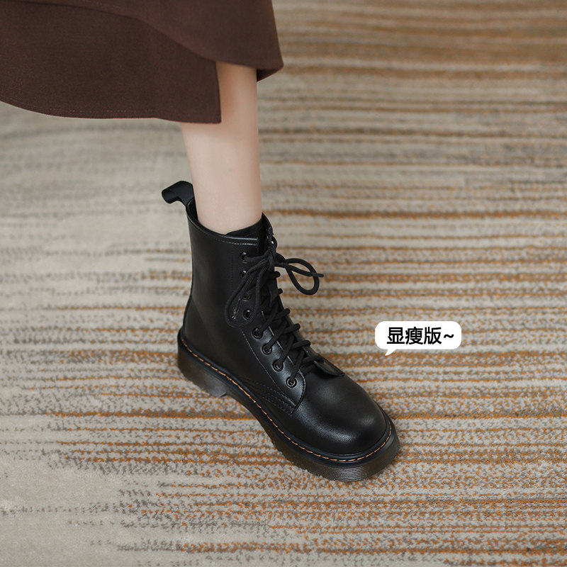 Martens, тонкие черные короткие сапоги, ботинки в английском стиле, из натуральной кожи, модель весна/осень 2024 года, в британском стиле