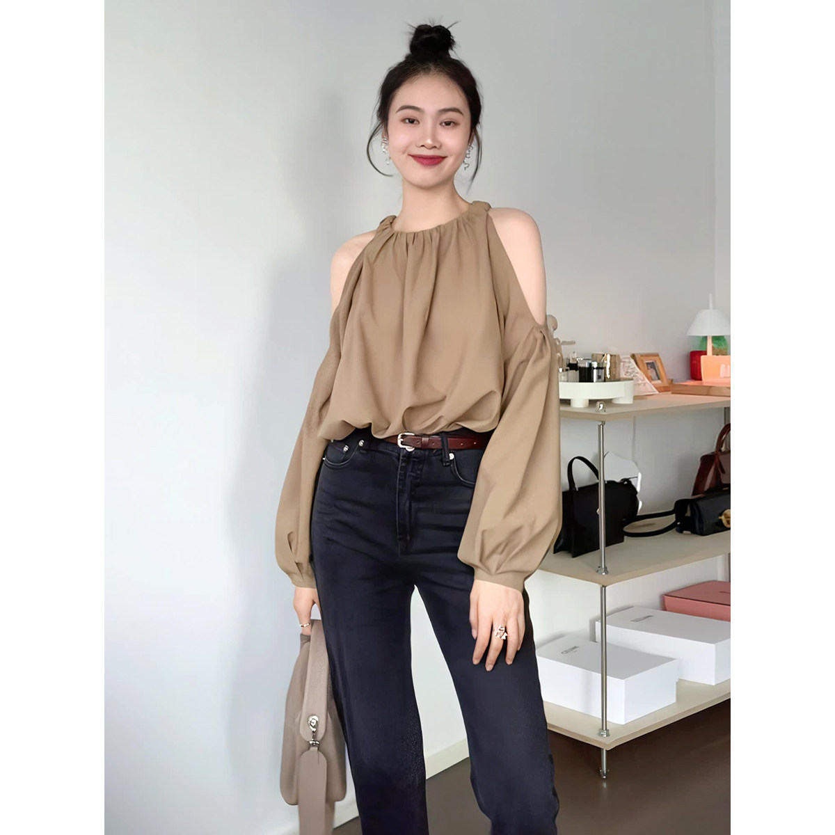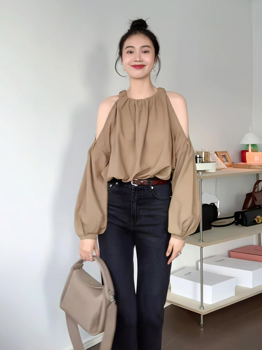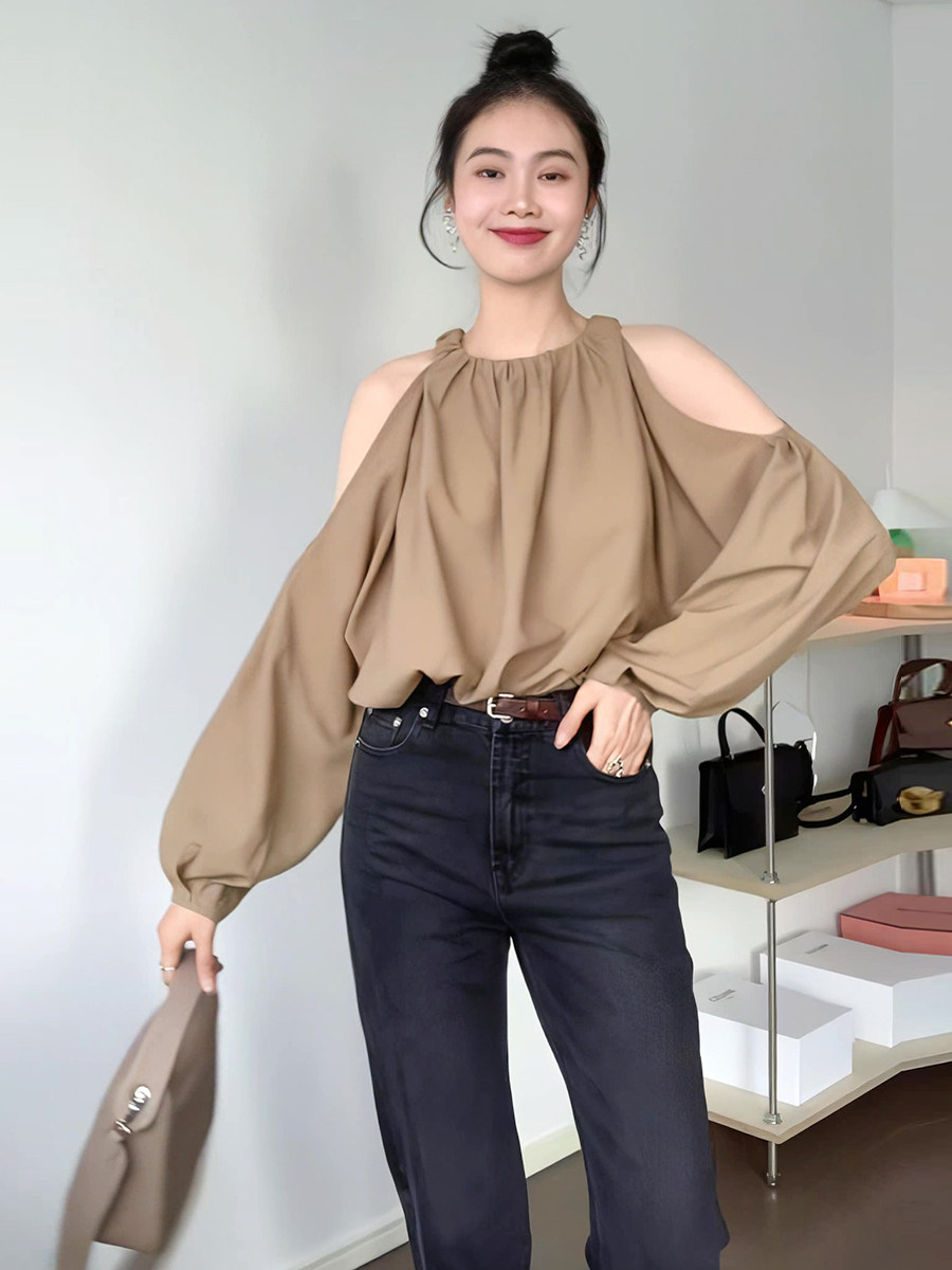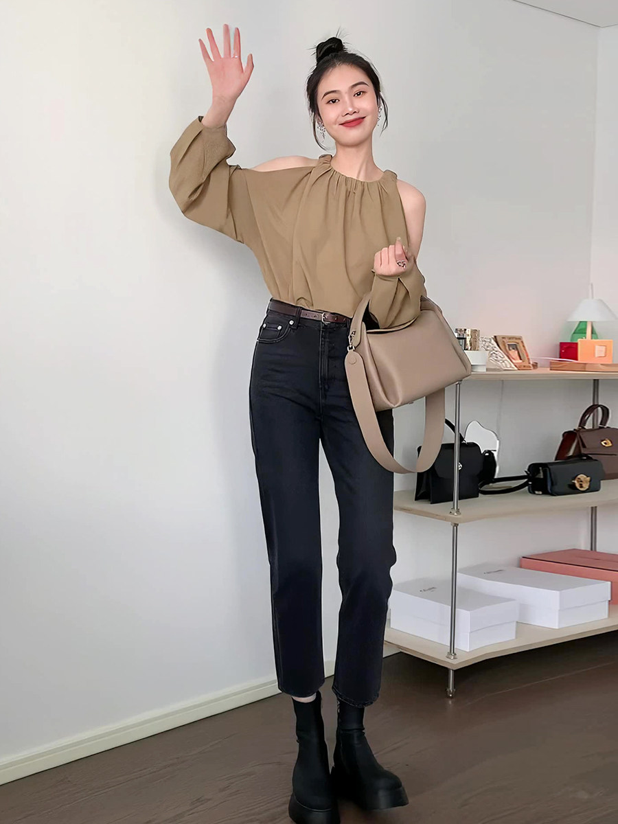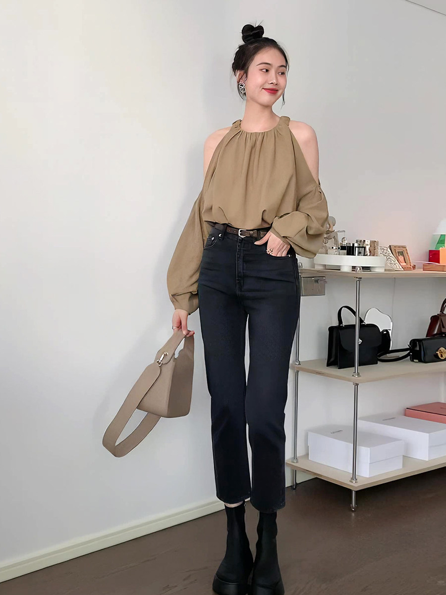 Ретро осенняя небольшая дизайнерская рубашка, французский ретро стиль, тренд сезона, по фигуре