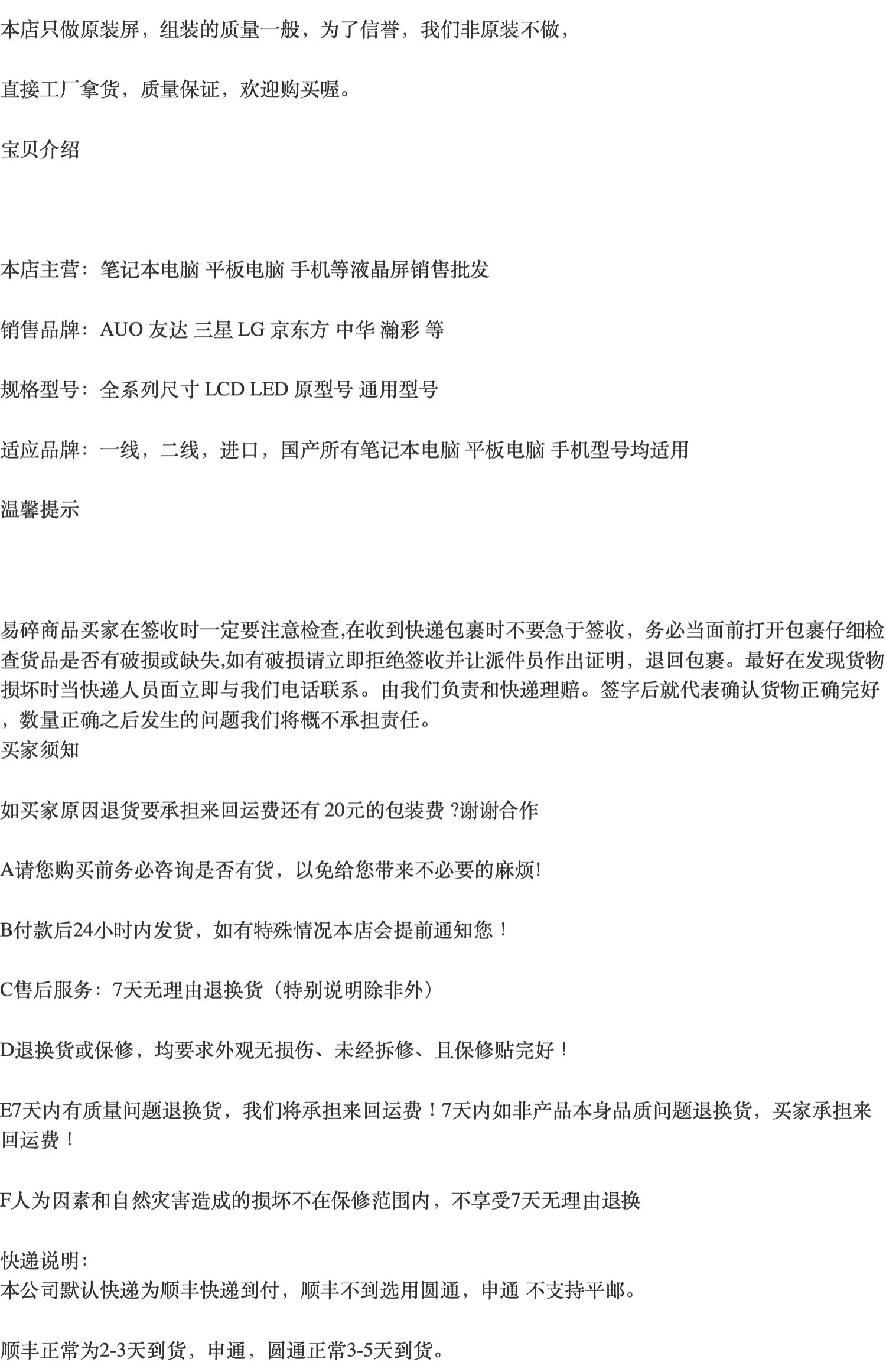 Продавец:华信科技平板触屏液晶笔记本液晶屏