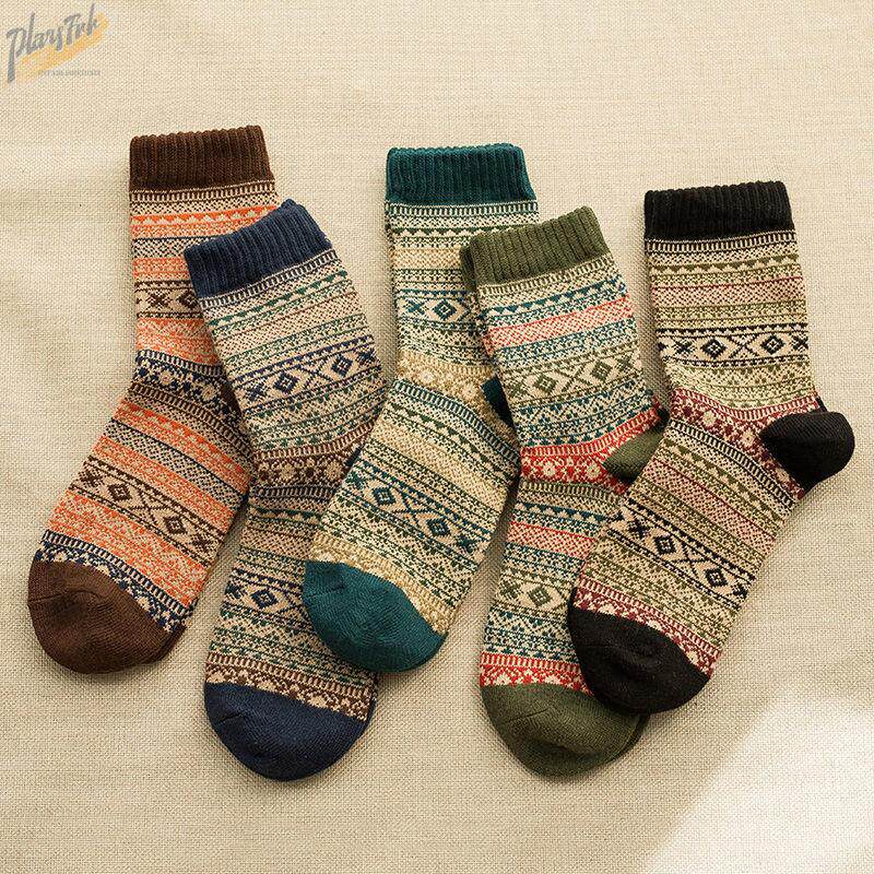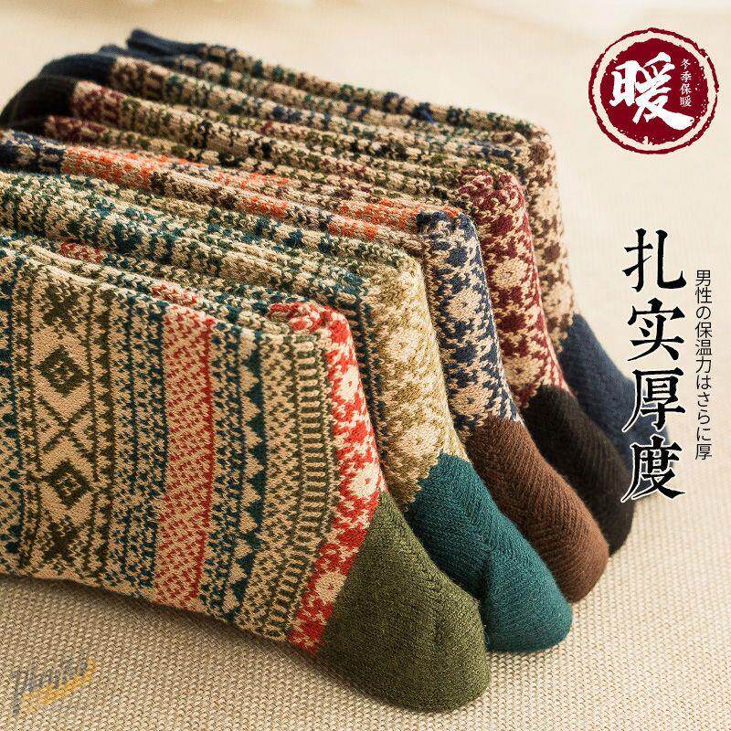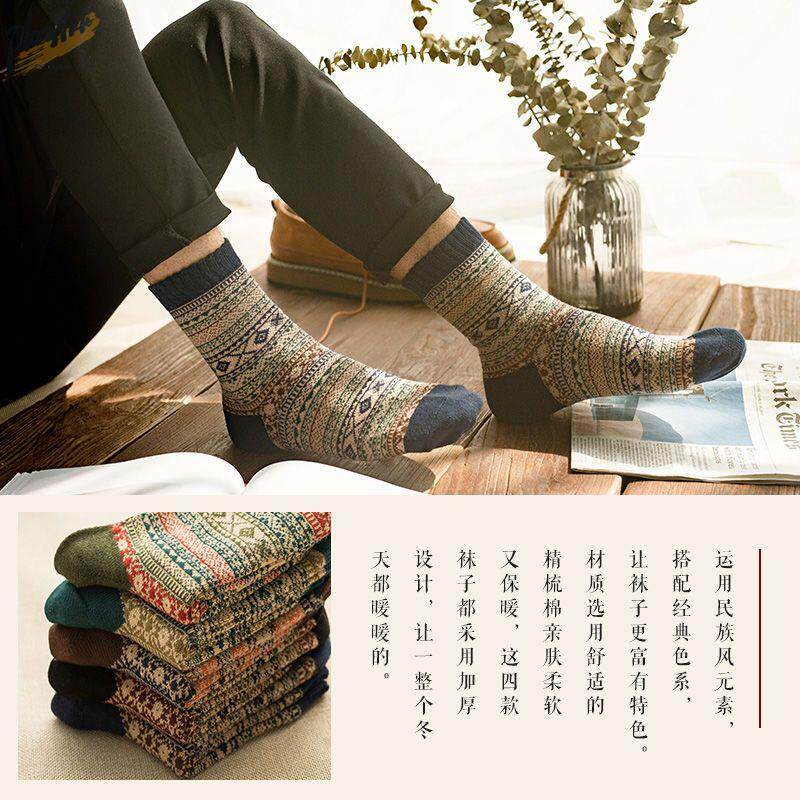 Осенние и зимнее потепление ретро -хараджуки -стрит приливные носки для мужчин в клетчатке с бриллиантовыми клетчатками и шерстяными носками в середине хлопковых носков в хлопковых носках
