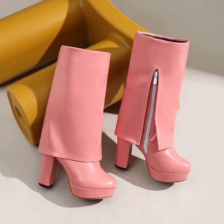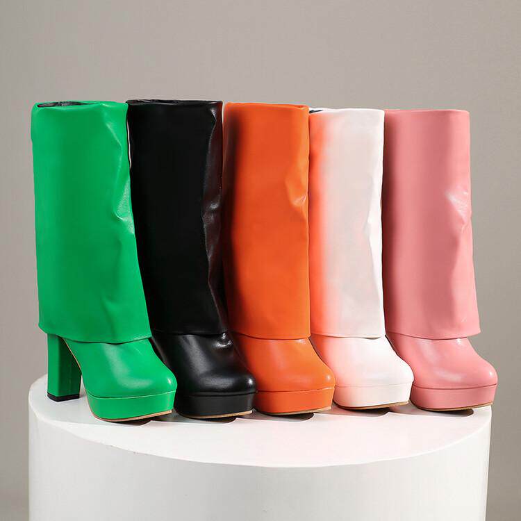 Сексуальные сапоги до середины икры в европейском и американском стиле, новые сапоги до середины икры на высоком каблуке с закругленным носком и боковой молнией на толстом каблуке и толстой подошве, простые японские рыцарские сапоги