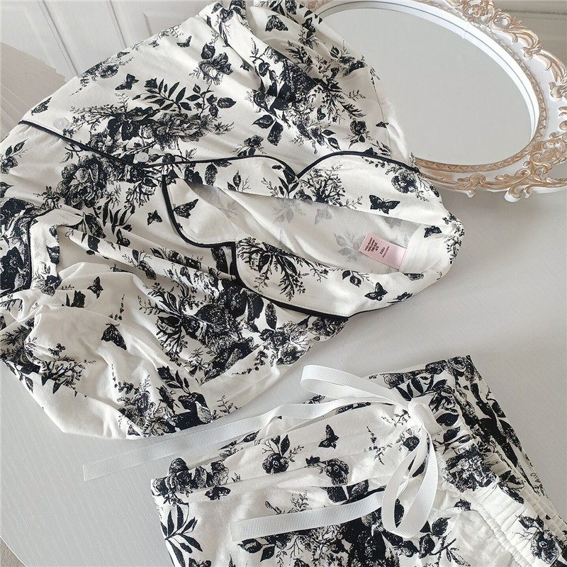 [Алиса の Wonderland] против осенью нового продукта мягкая модальная пижама Женская атмосферная элегантная цветы с длинным рукавом набор