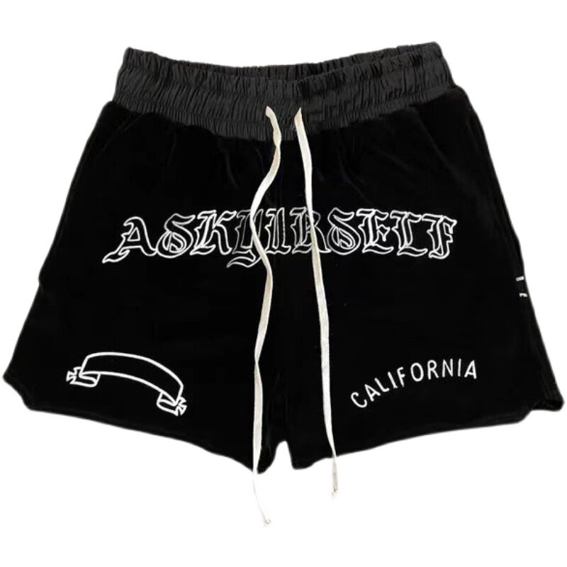 Askyurseell OG Boxing Shorts вышитые буквы, перекачивая веревку, свободные шорты свободная молодость
