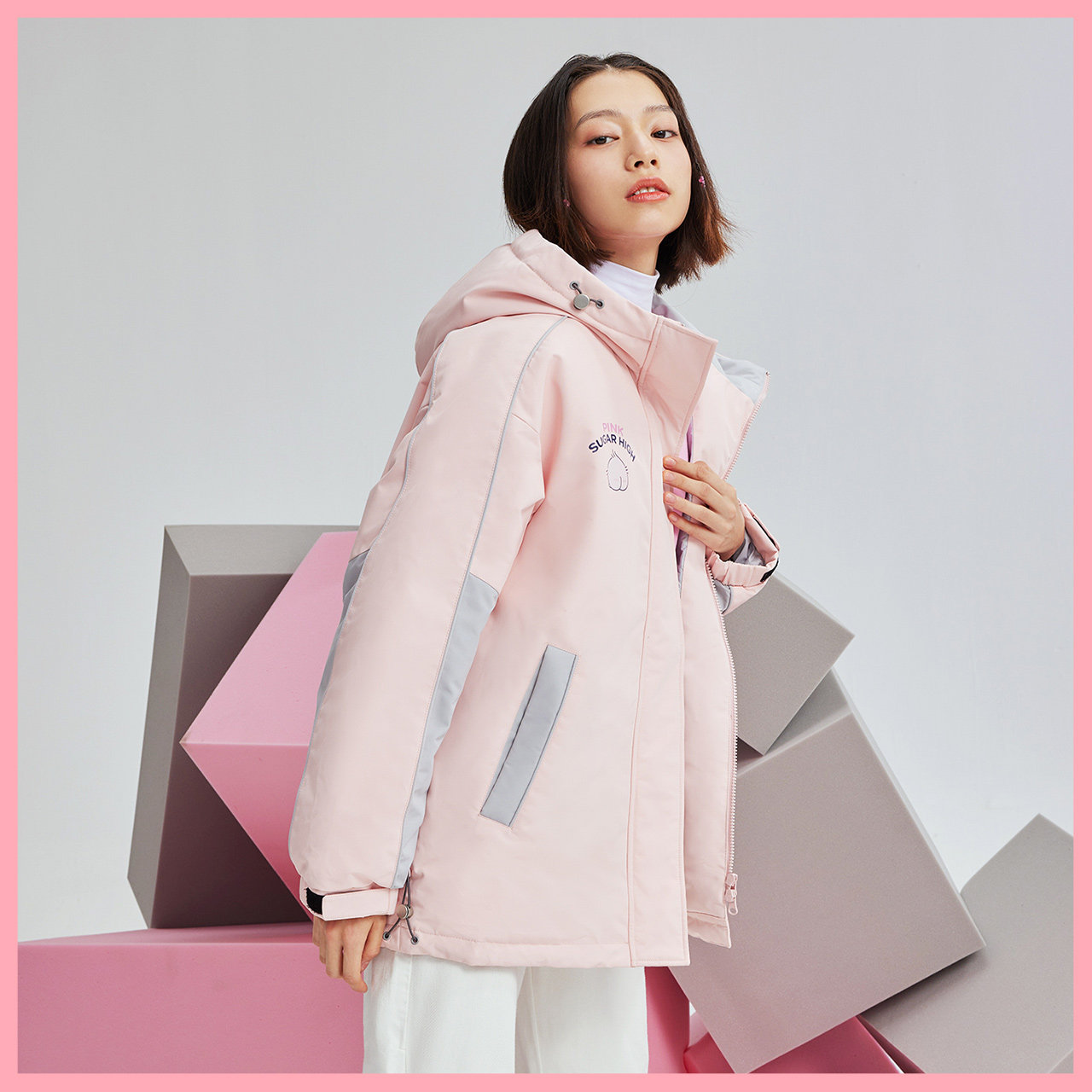 Демисезонный короткий минималистичный розовый модный пуховик