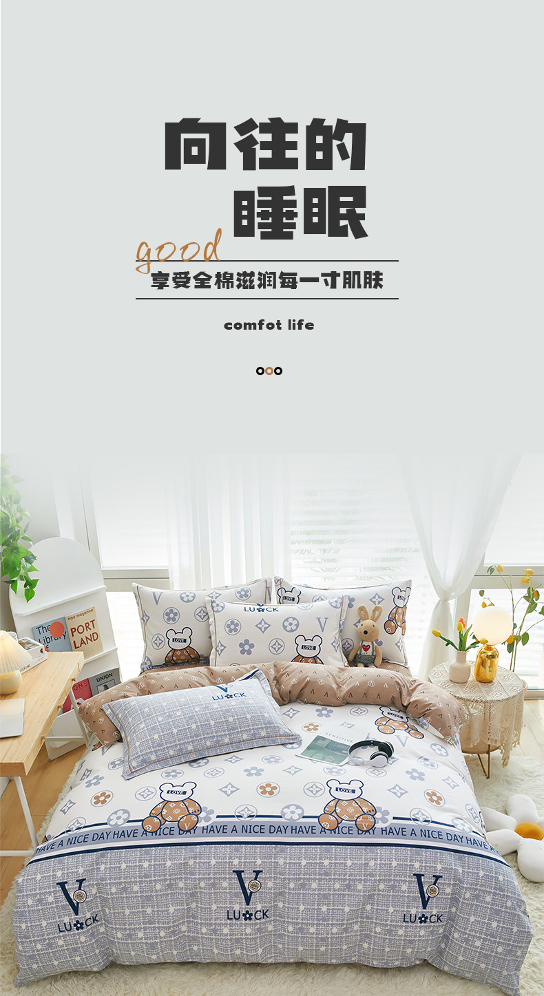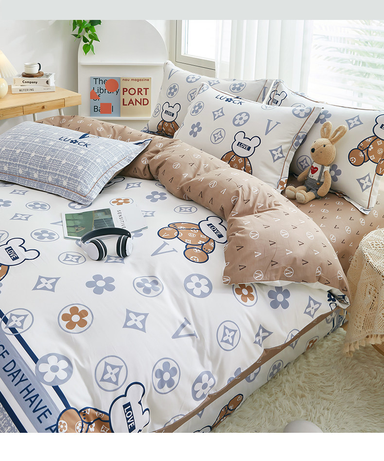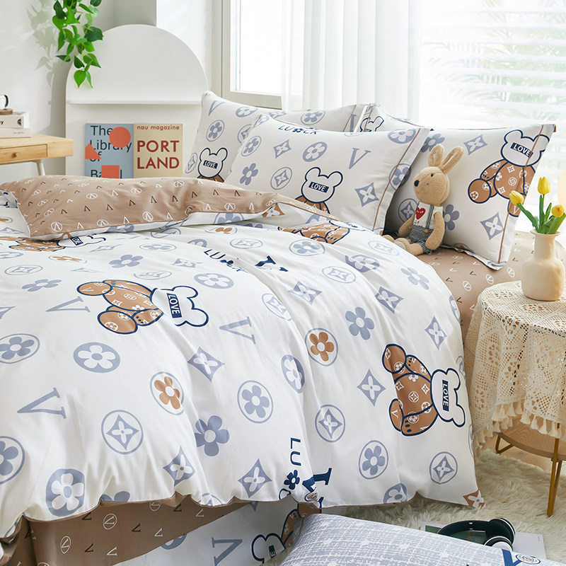 Хлопковый комплект, простыня, пододеяльник для школьников и студентов, летнее покрывало, 4 предмета, 3 предмета