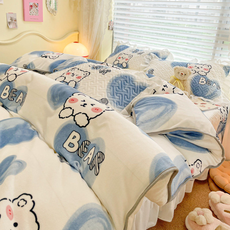 Высококлассная утепленная фланелевая простыня, комплект, коллекция 2022, 3 предмета