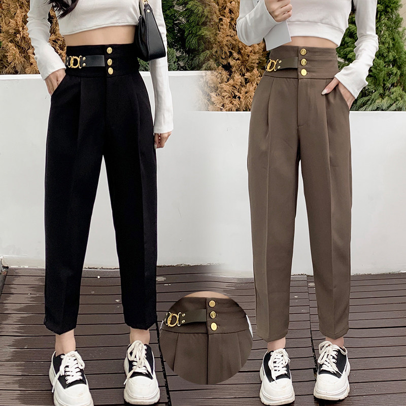 Весенние штаны, костюм, высокая талия, подходят для подростков, свободный прямой крой