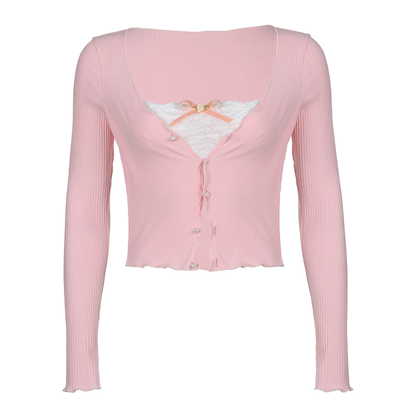 WEEKEEP Комплект, топ без лямок, кардиган, приталенный лонгслив, французский стиль