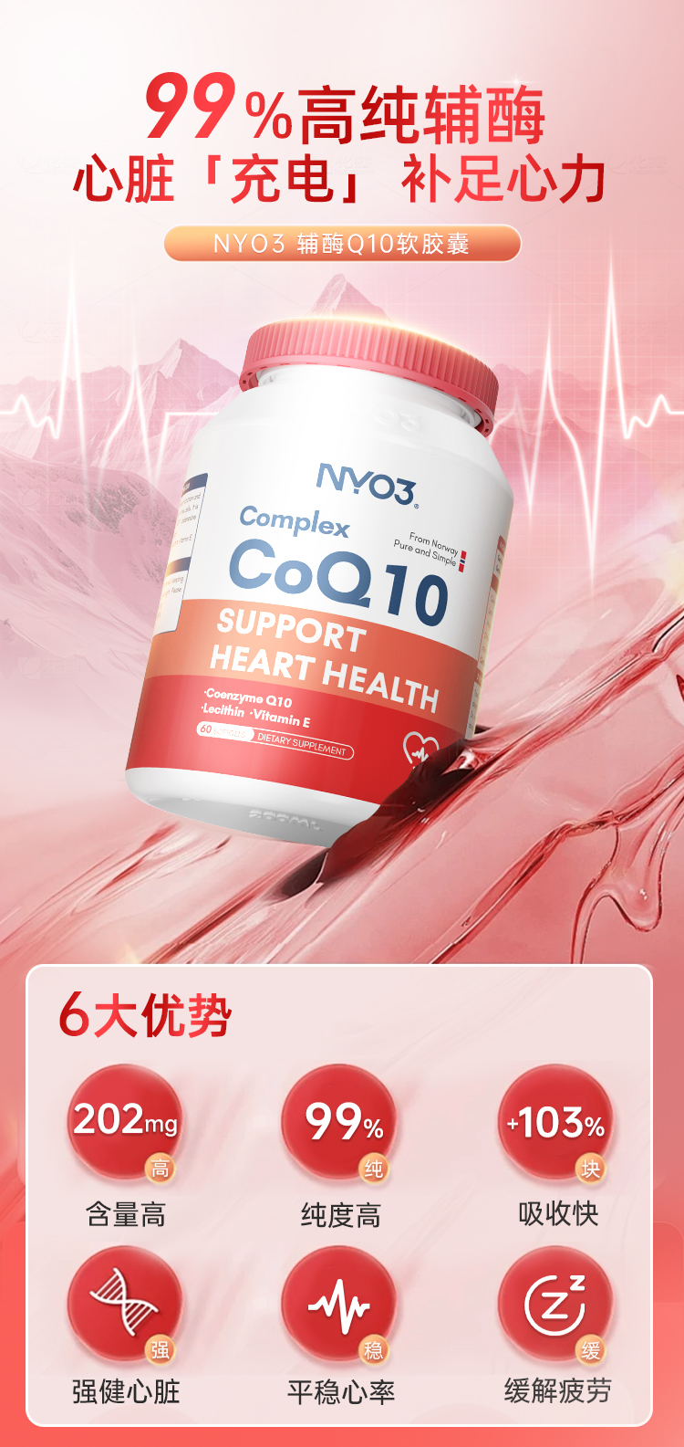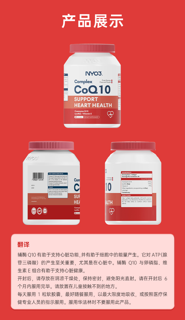 NYO3 Норвежский окисление коэнзим Q10 мягкие капсулы сердечно -сосудистые сердца миокард 202 мг высокий содержание импорт.