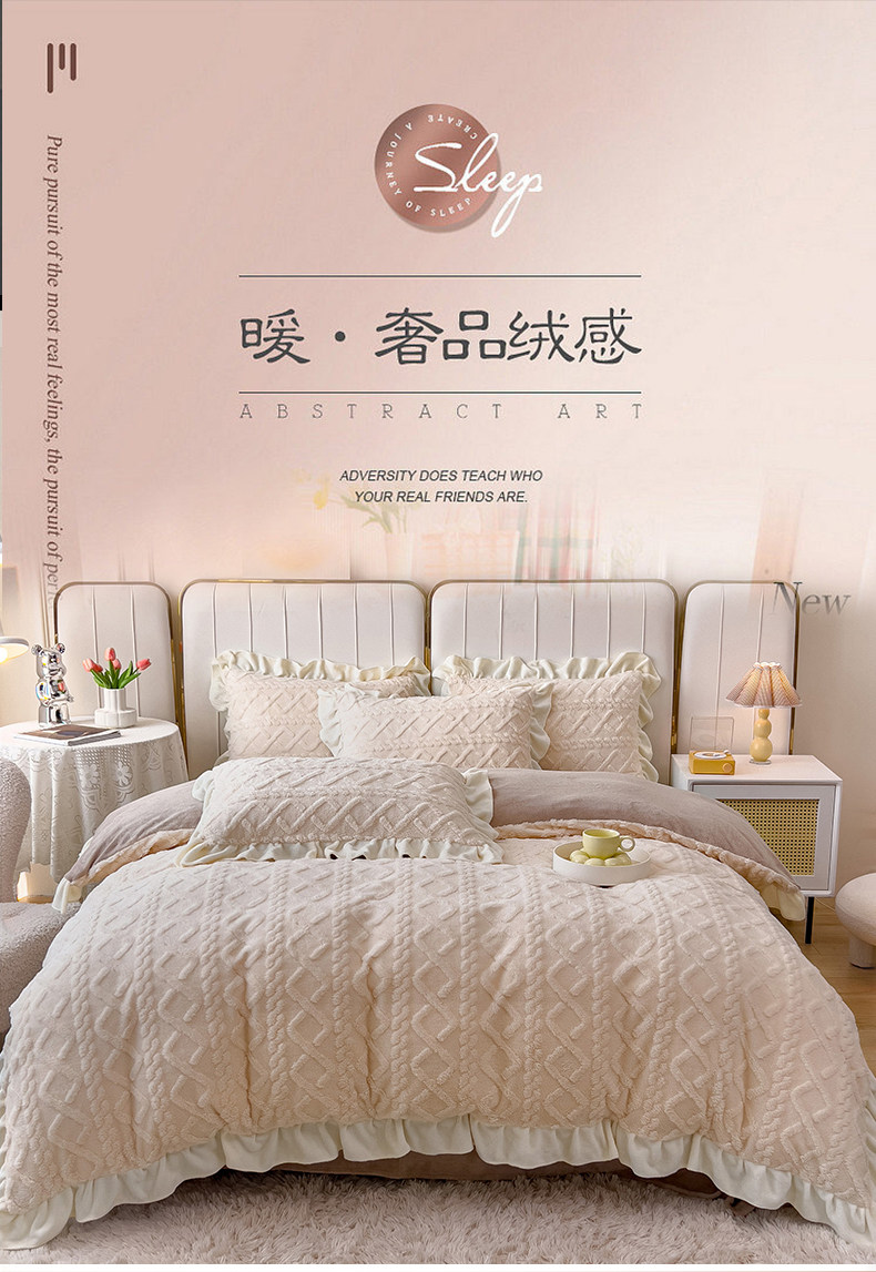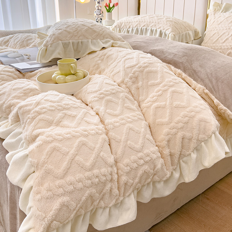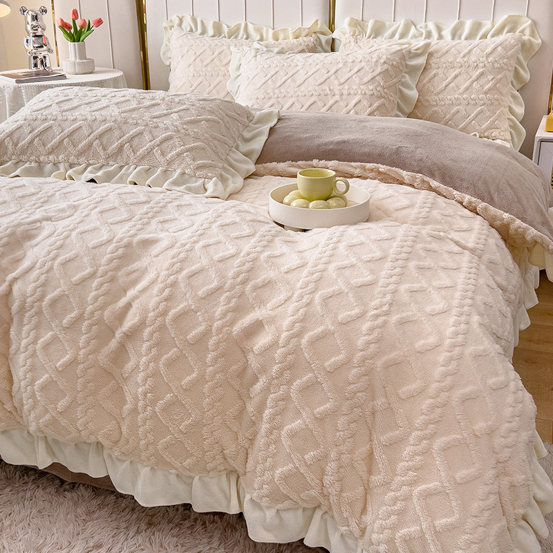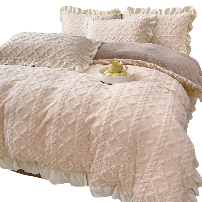 Зимний комплект, коралловое фланелевое покрывало, замшевый пододеяльник, простыня, 4 предмета, увеличенная толщина