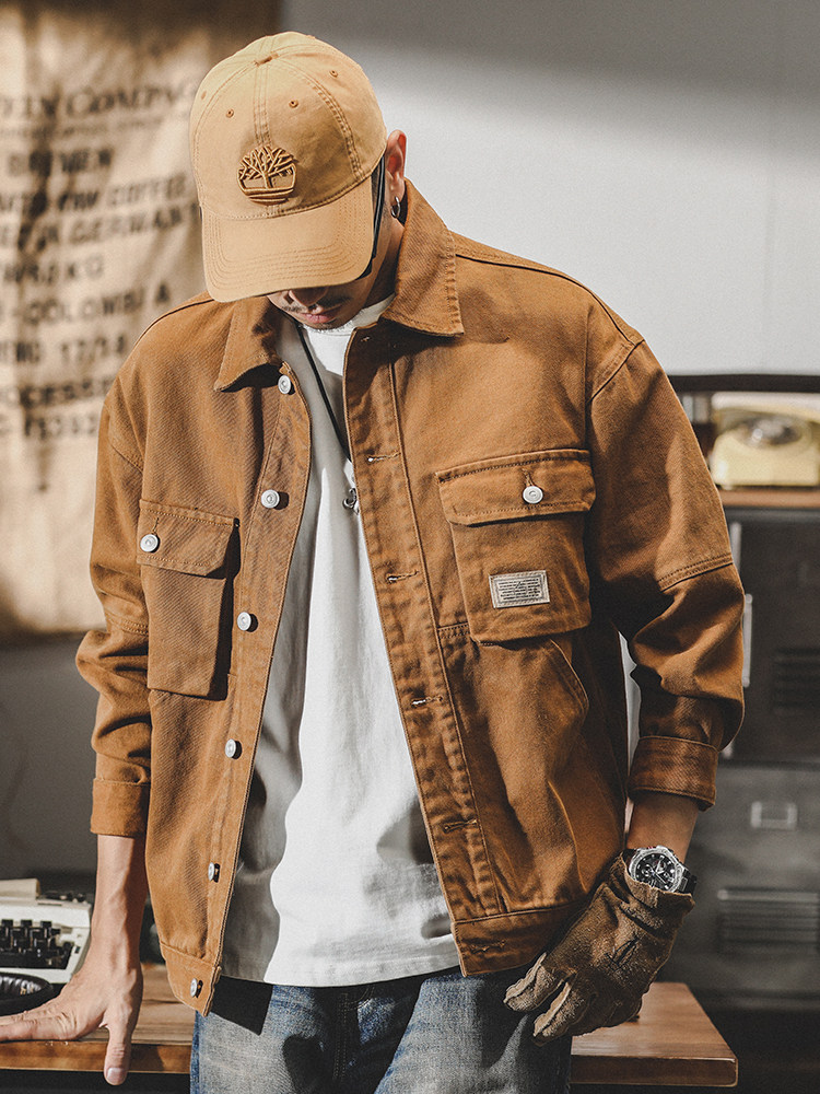 Ретро джинсовая мужская осенняя трендовая утепленная куртка для отдыха, в американском стиле