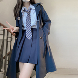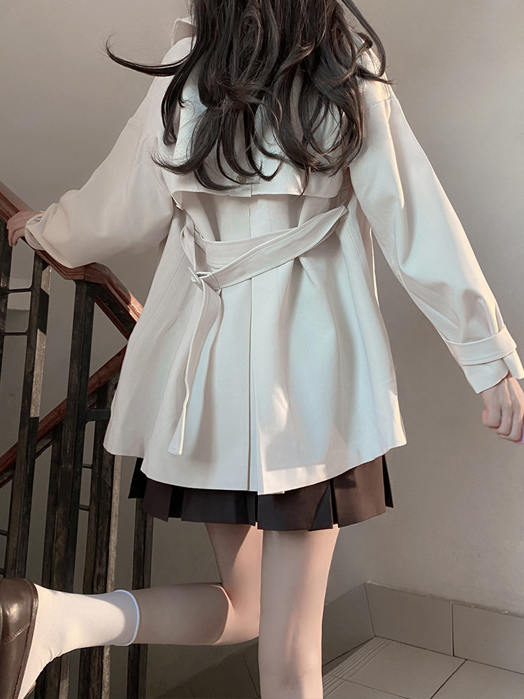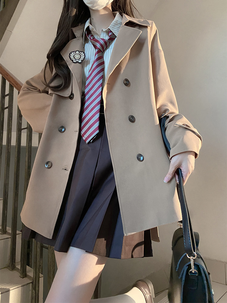 Оригинальная студенческая юбка в складку, плащ, осеннее короткое пальто