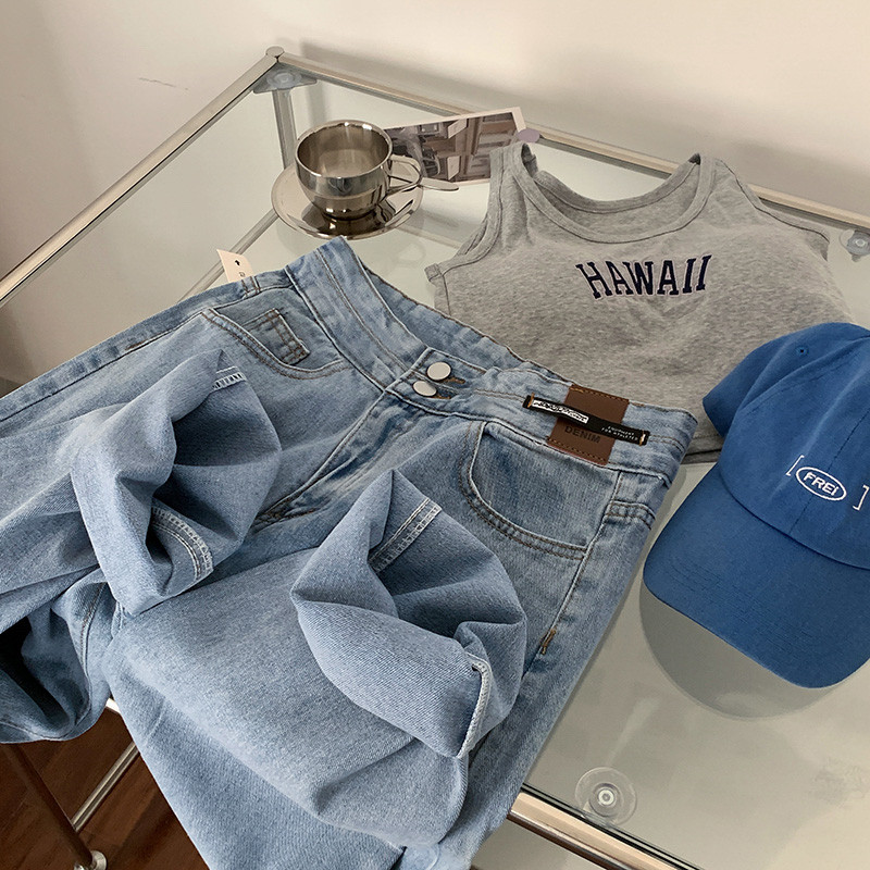 Ретро синие дизайнерские джинсы, осенние приталенные штаны, тренд сезона, высокая талия, свободный прямой крой