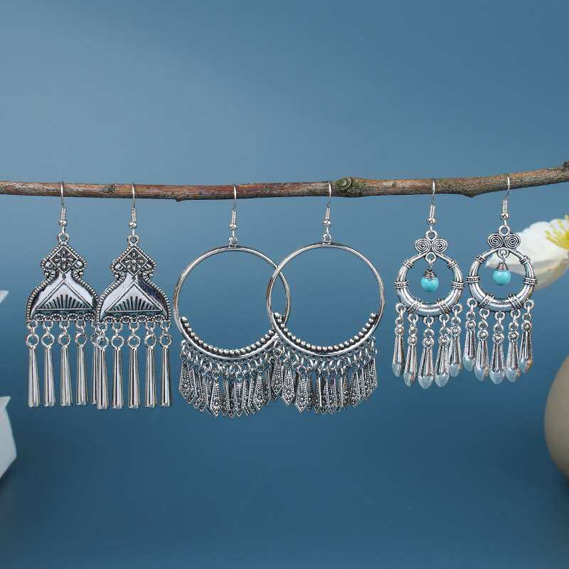 Богемные серьги меньшинства ретро серебро серебряный популярный бирюзовый та TA