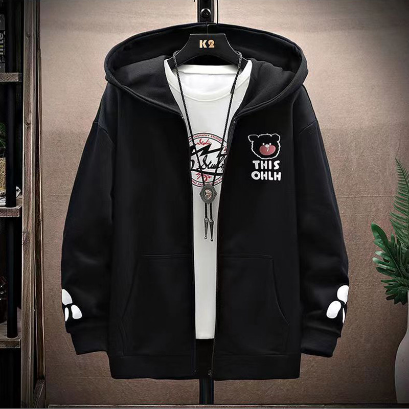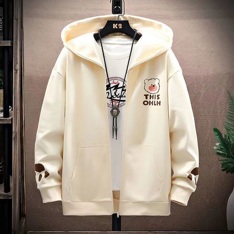 Демисезонные джинсы с начесом, толстовка, кардиган для школьников, мужская куртка для влюбленных, 2024 года, свободный крой