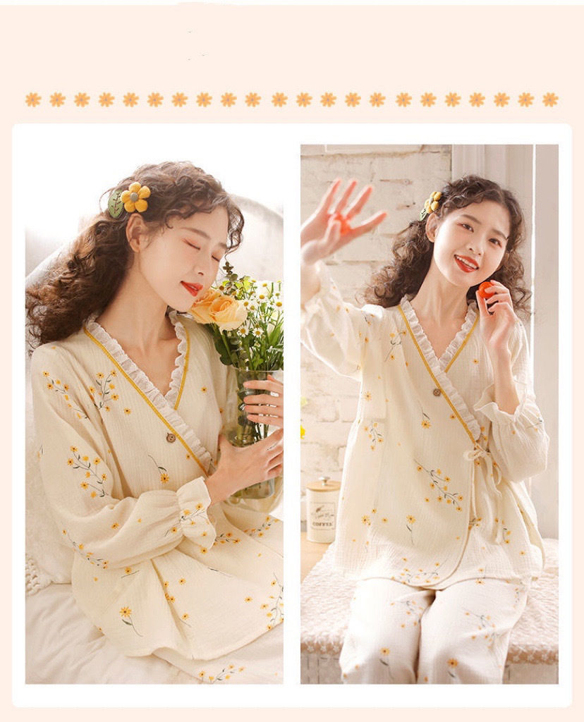 Хлопковая японская пижама, милый лонгслив, оверсайз