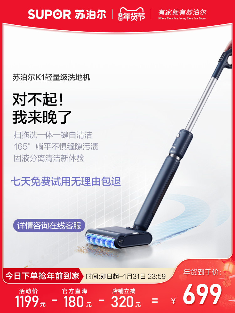 Стиральная машина Supor Home Беспроводная самооценка легкая звуковая рука нажимайте большую всасывание автоматическое перетаскивание всех -один K1
