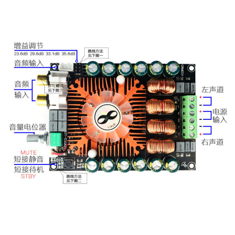 XH-A121 Super Large Power Digital Panel TDA7498E Double 160W поддерживает громкость громкости сцены