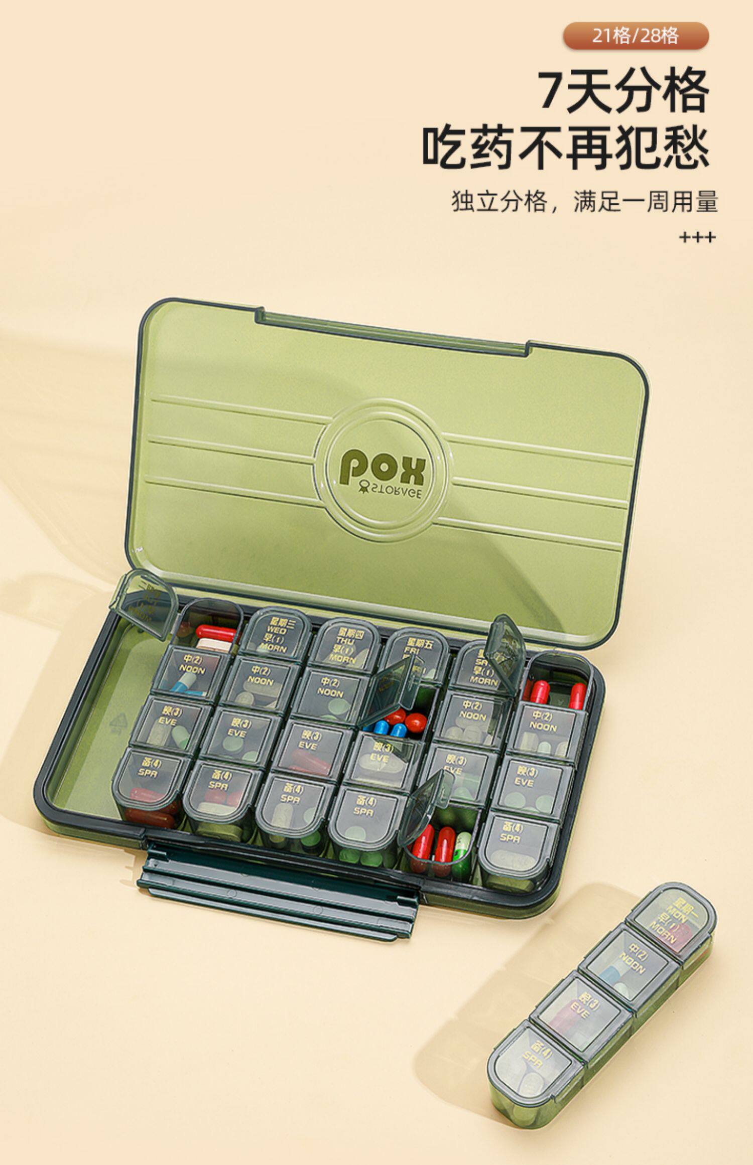 - 21 ячейка прозрачная зеленая [7 дней, 3-х разовое питание] пищевой | тройное уплотнение