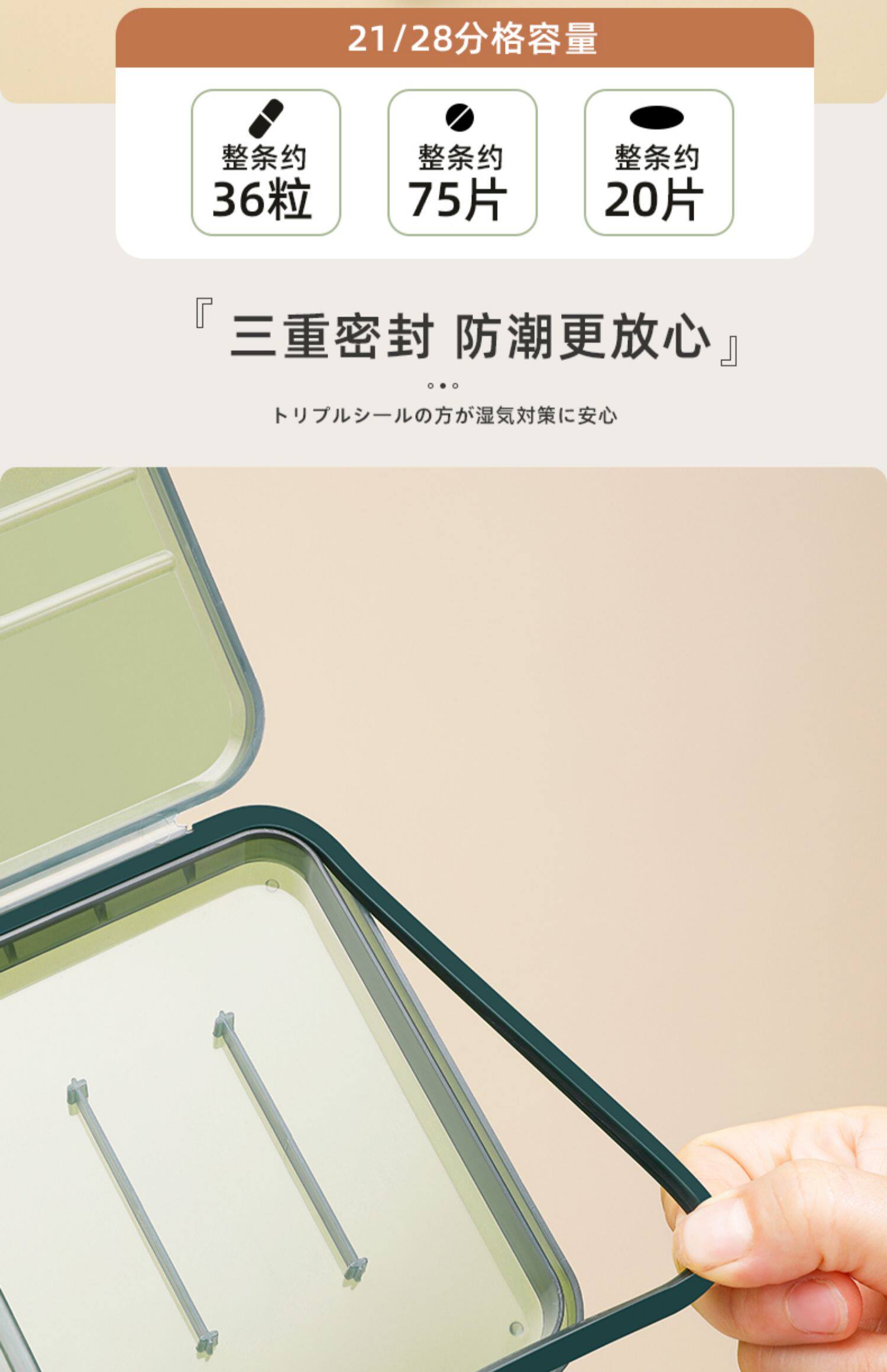 - 7 ячеек полупрозрачного зеленого цвета [7 дней, 1 ячейка в день] пищевой | тройное уплотнение