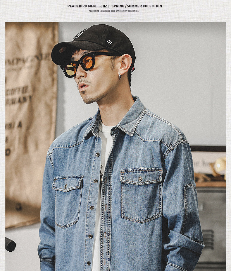 Tide, ретро мужская осенняя рубашка, джинсовая куртка, в американском стиле, 2025 года
