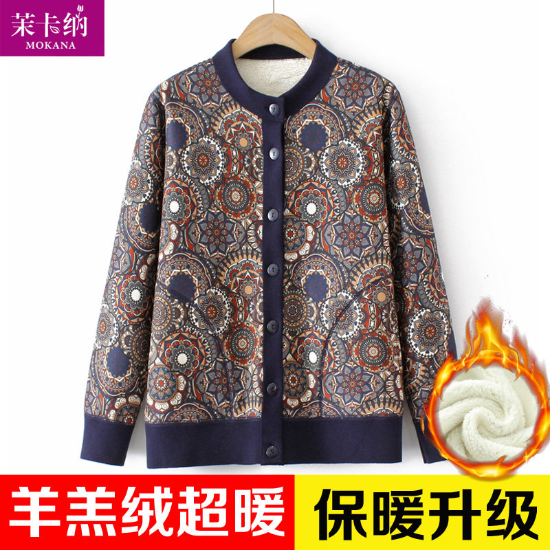 Осенний свитер для матери, утепленная трикотажная куртка, для среднего возраста