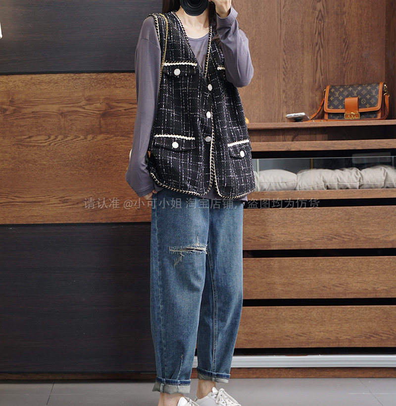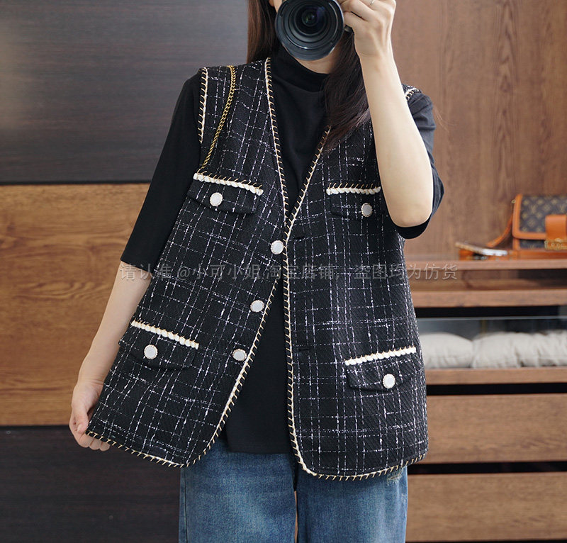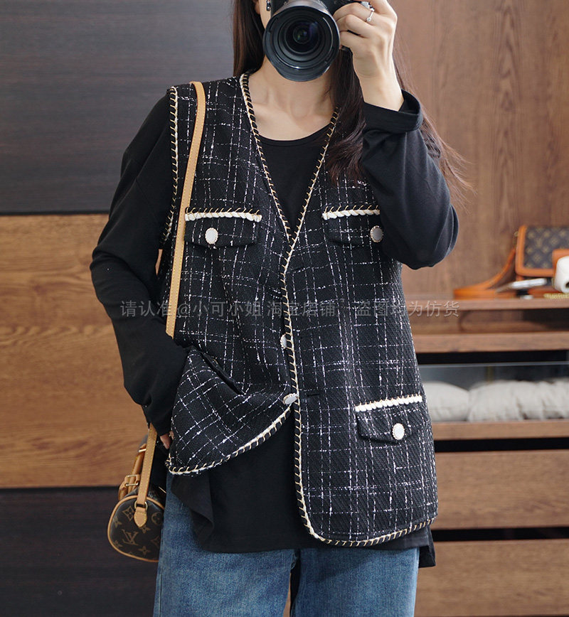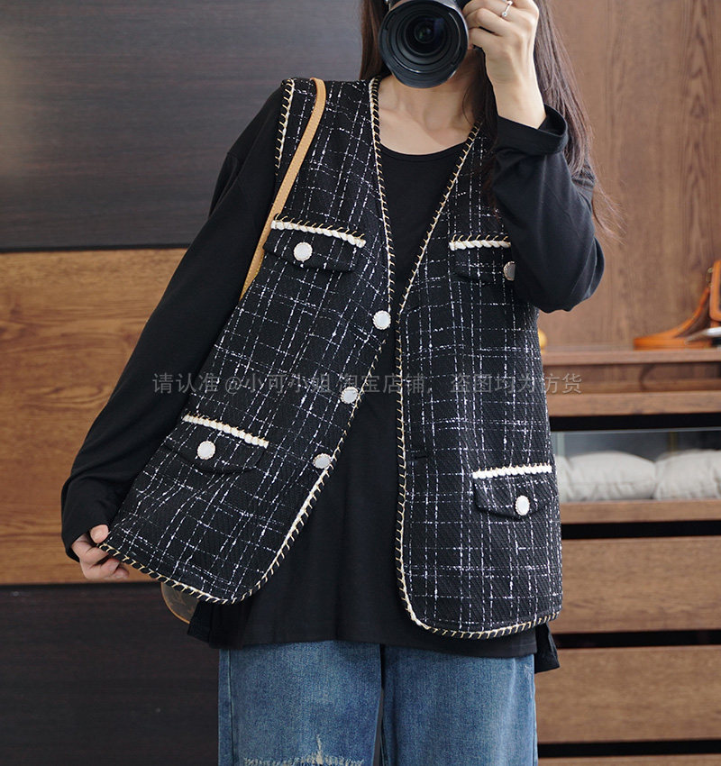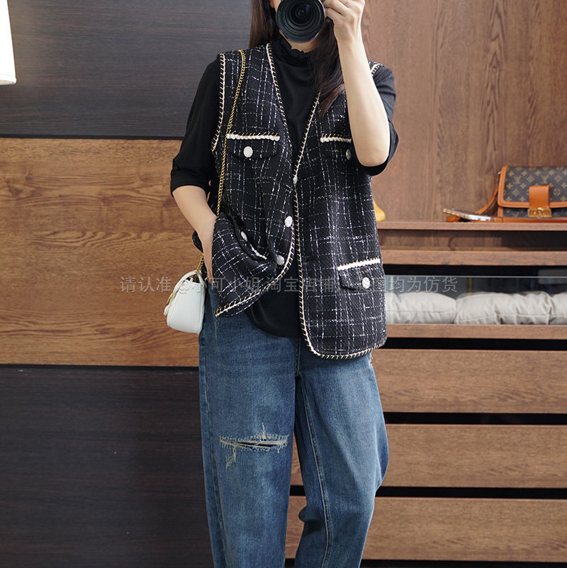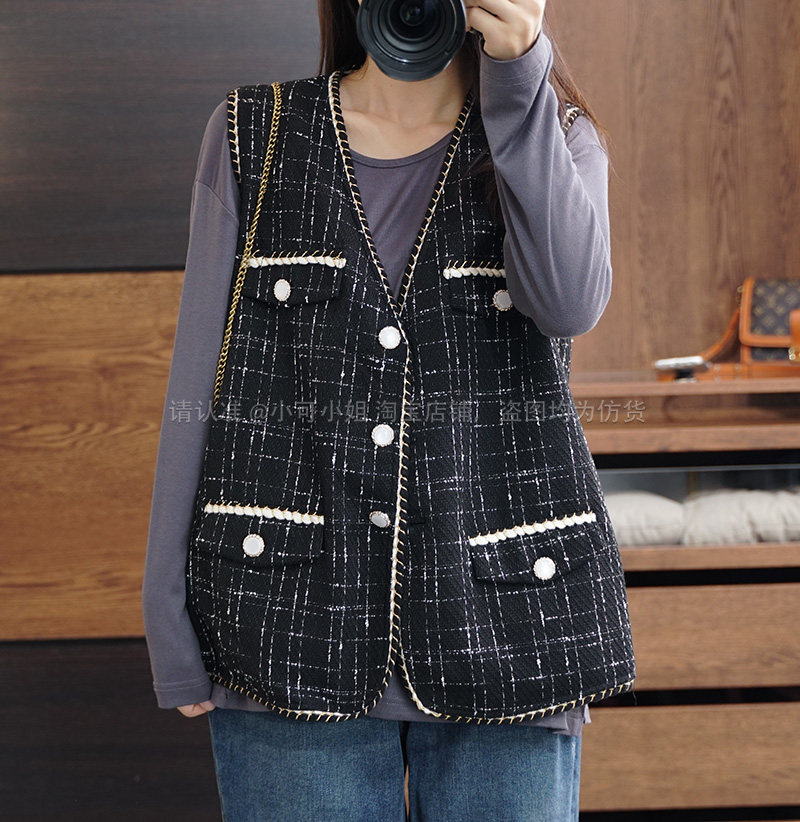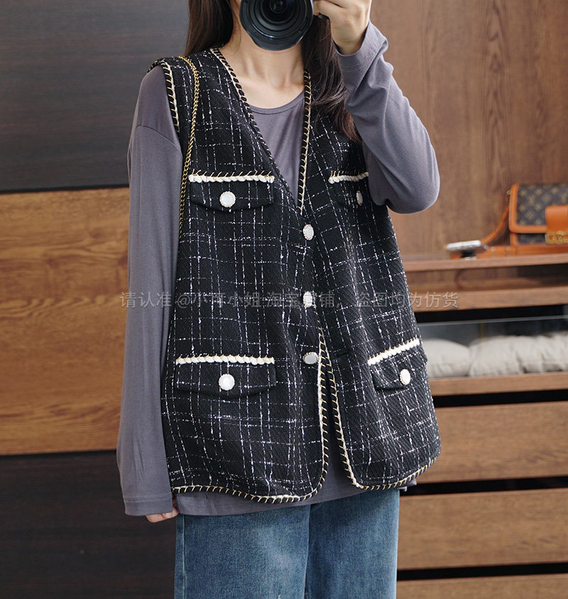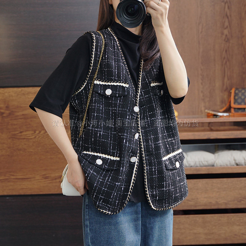 Осенний модный ретро кардиган, плетеная куртка, жилет, большой размер, в стиле Шанель, V-образный вырез