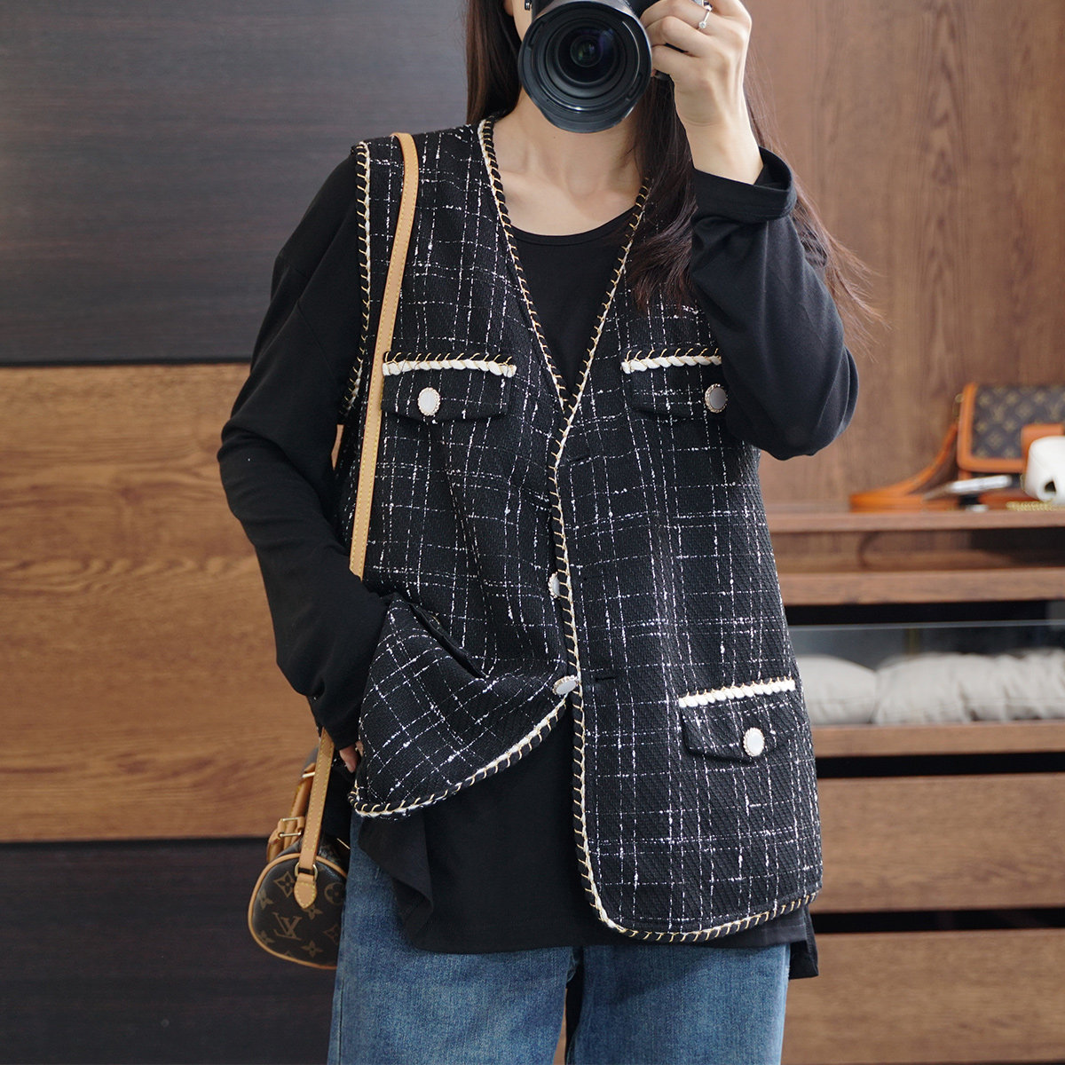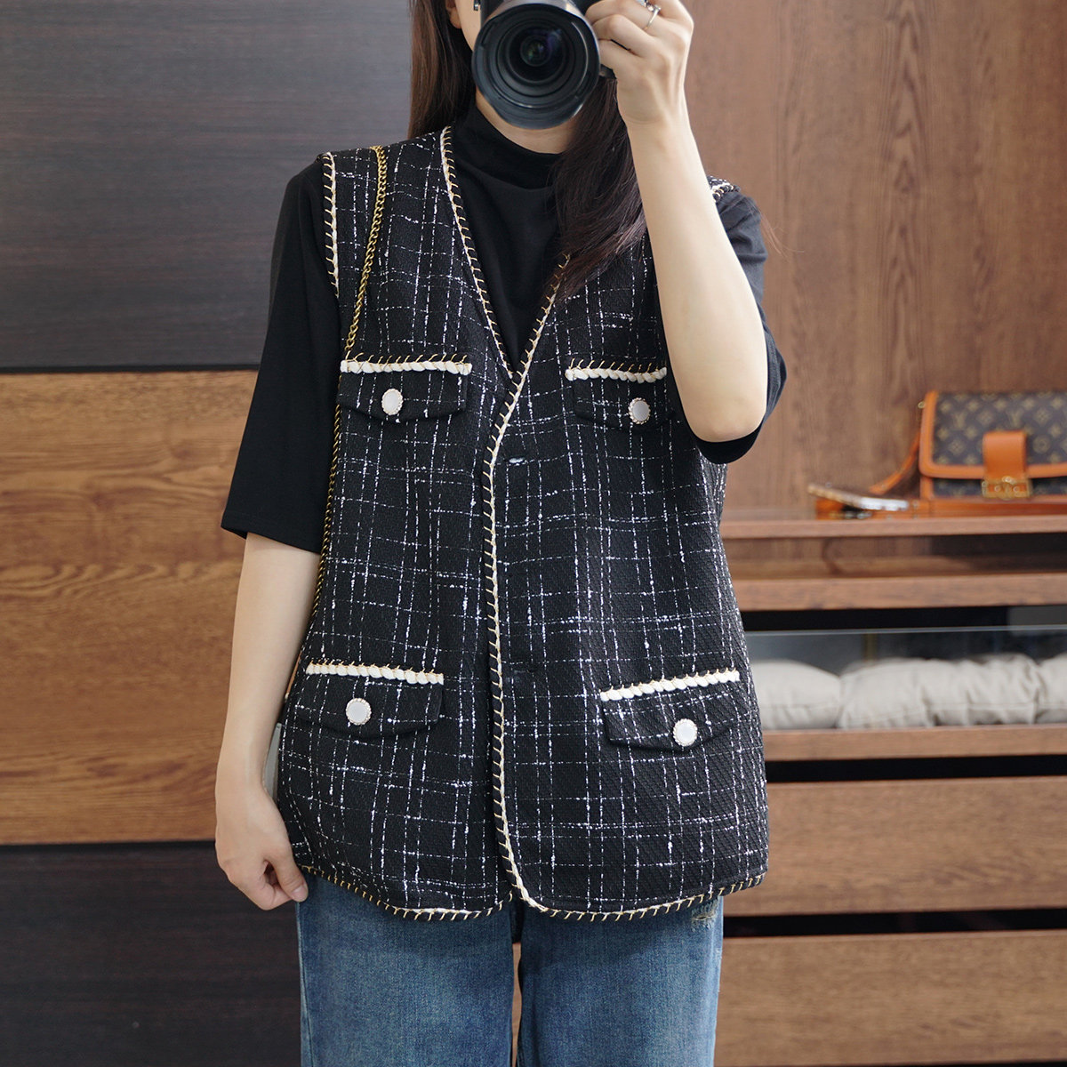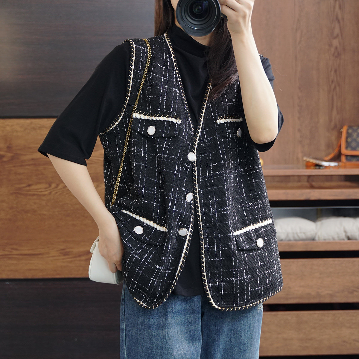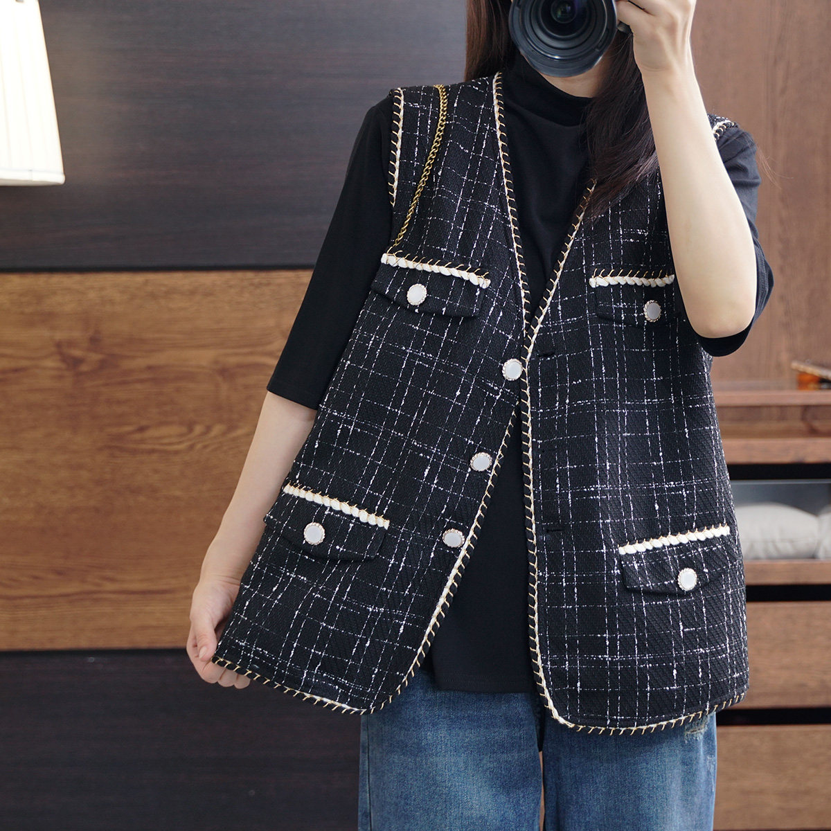 Осенний модный ретро кардиган, плетеная куртка, жилет, большой размер, в стиле Шанель, V-образный вырез