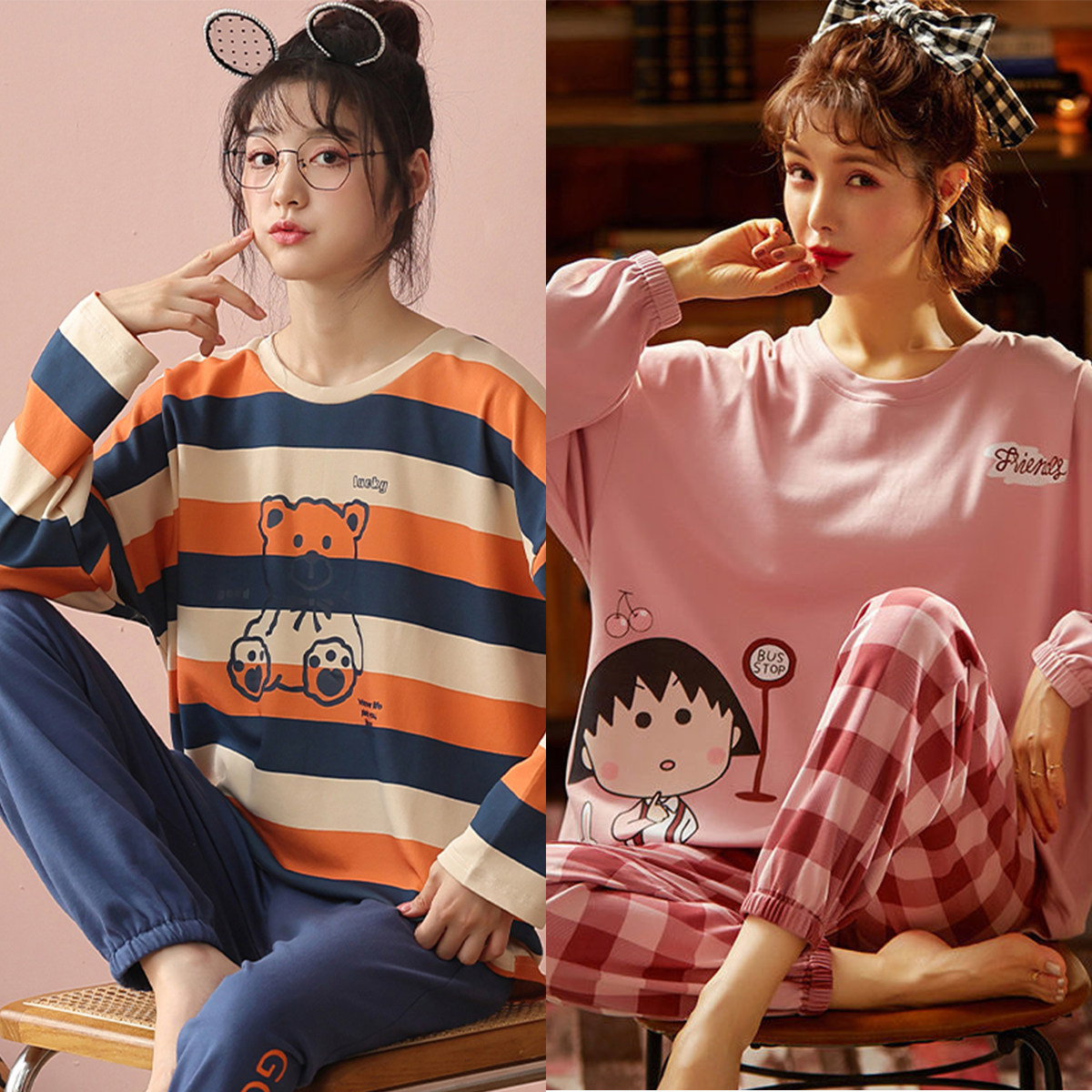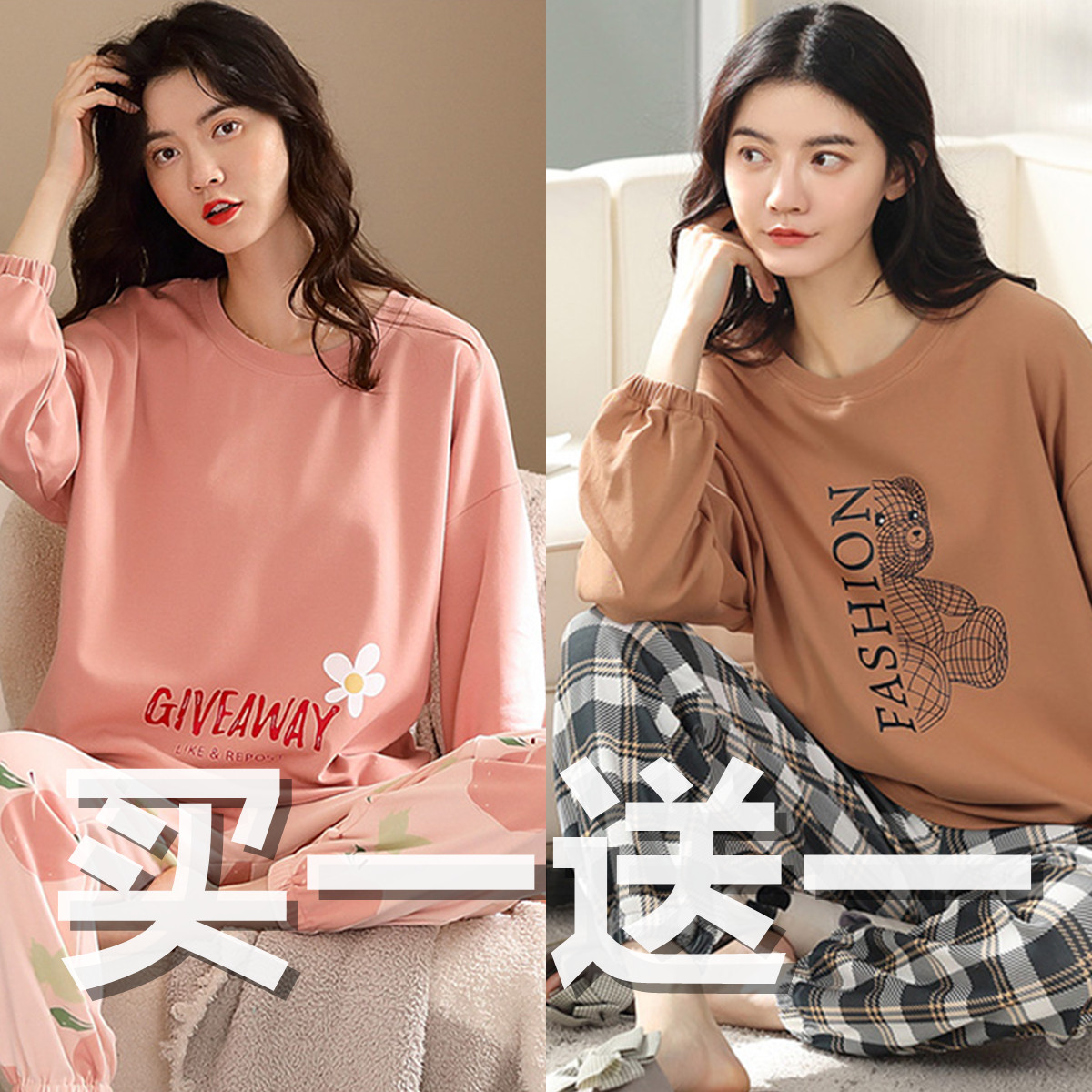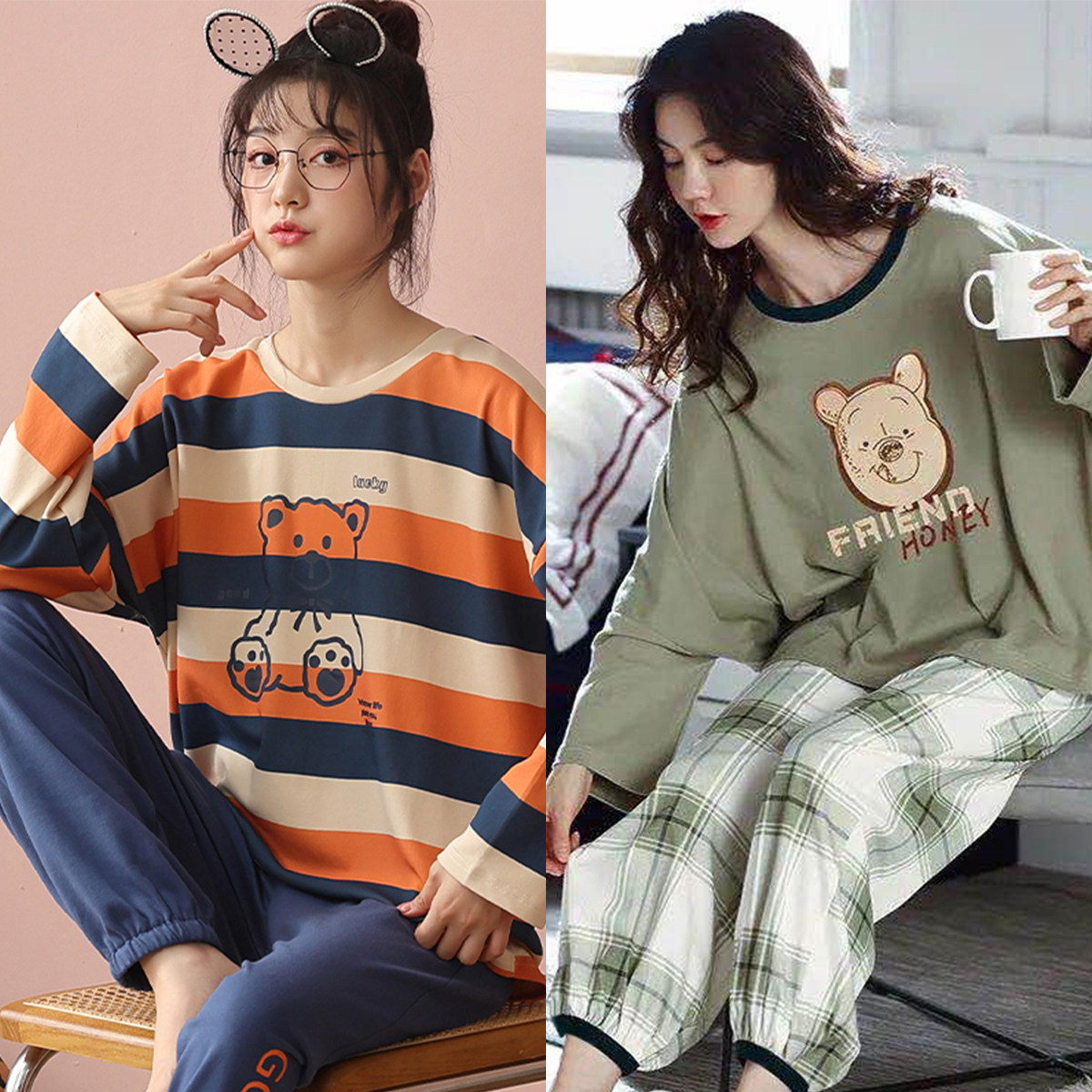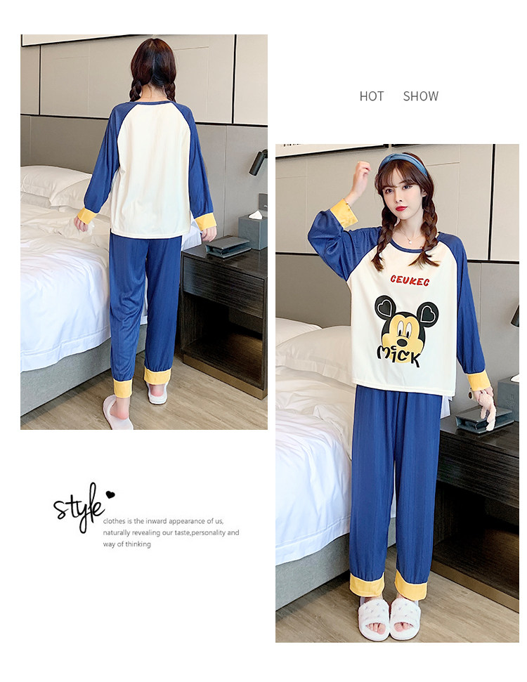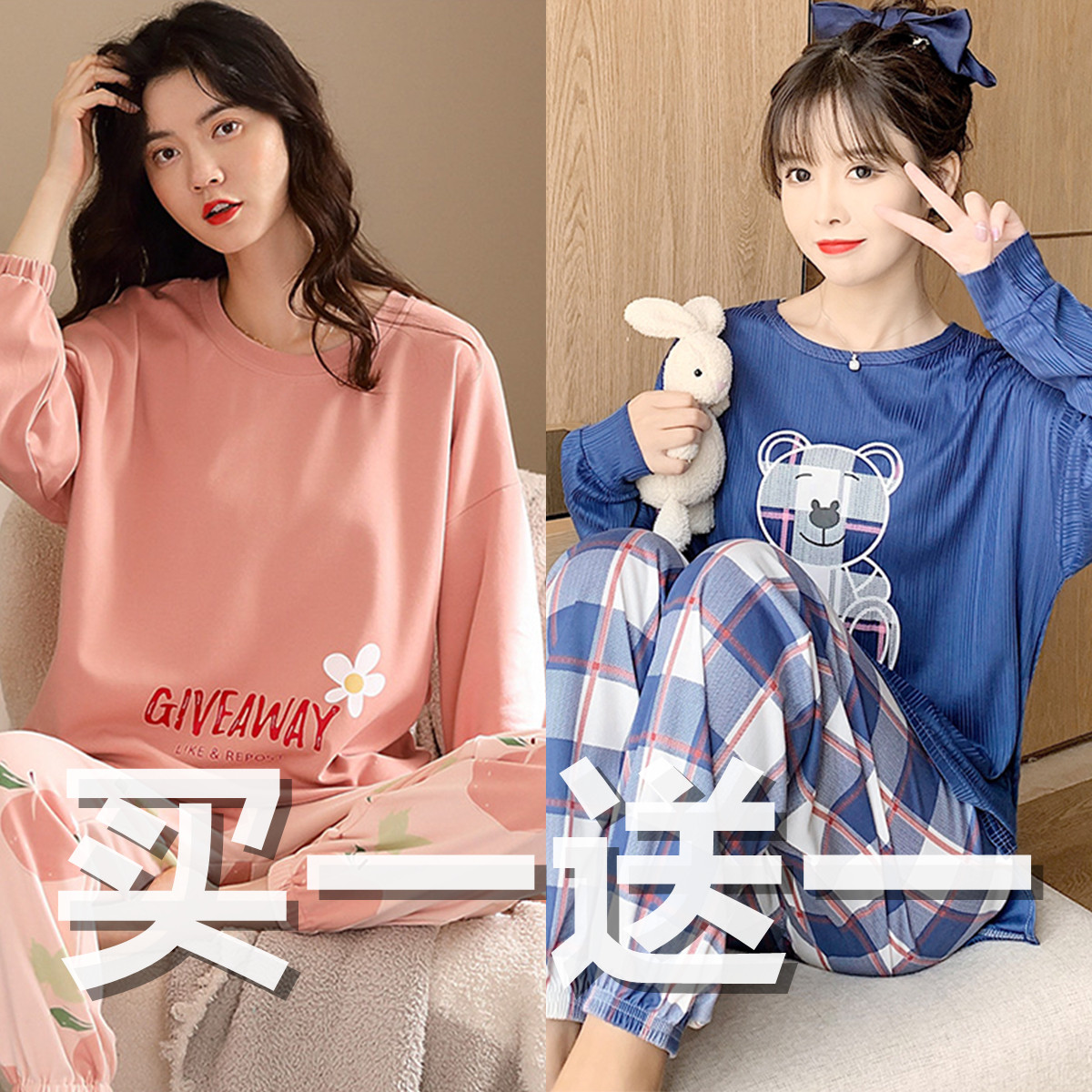 Осенняя демисезонная пижама, хлопковый свежий лонгслив для отдыха, демисезонный комплект, в корейском стиле, большой размер