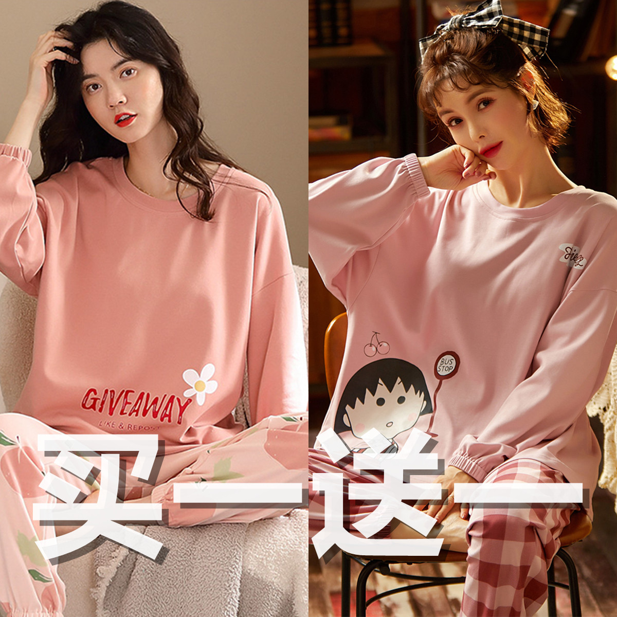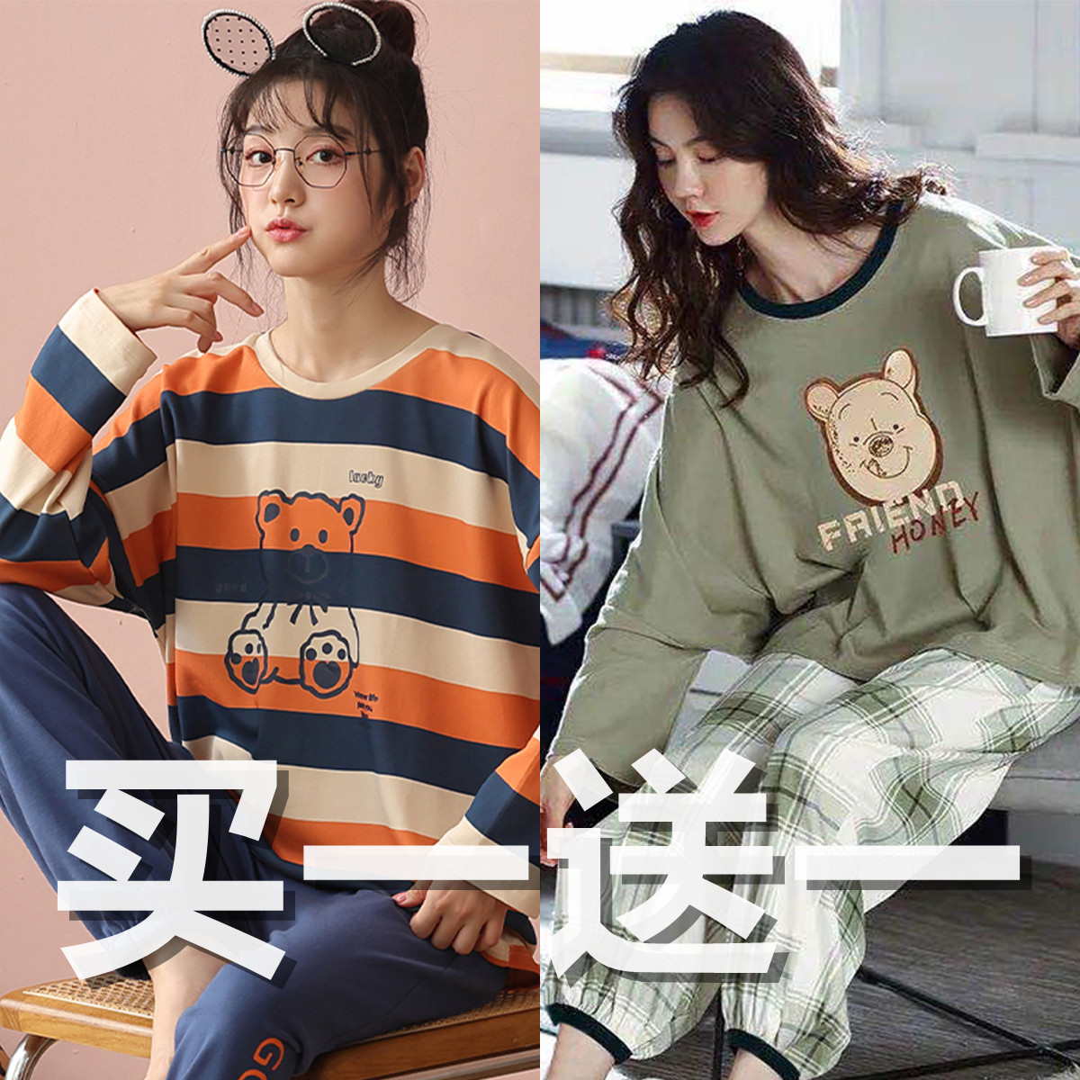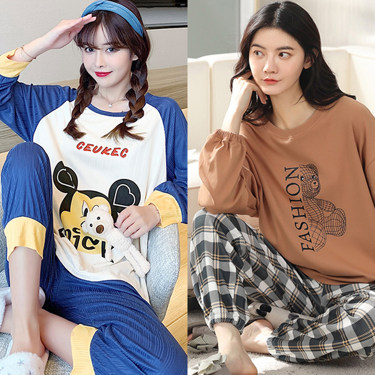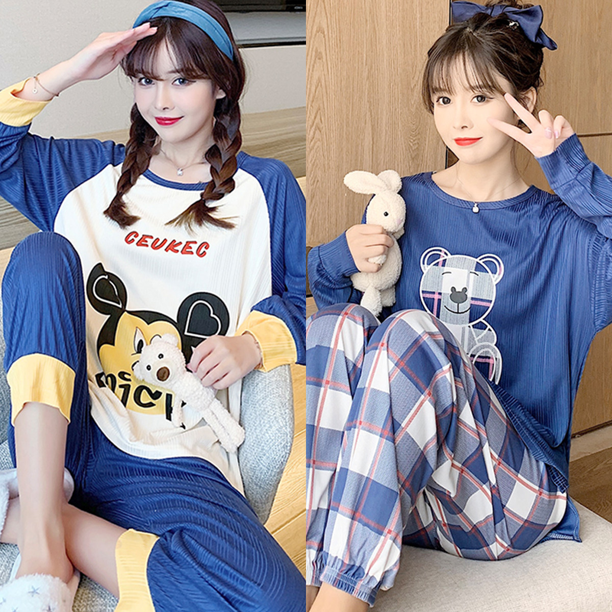 Осенняя демисезонная пижама, хлопковый свежий лонгслив для отдыха, демисезонный комплект, в корейском стиле, большой размер