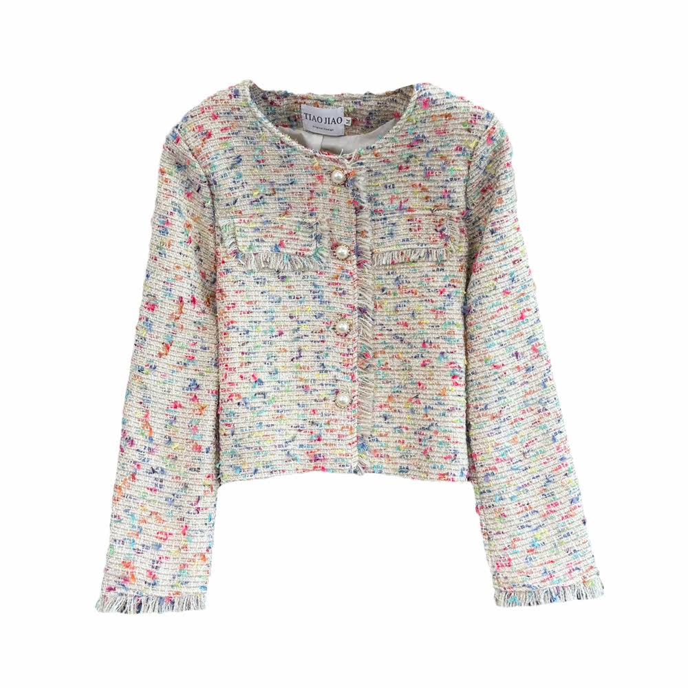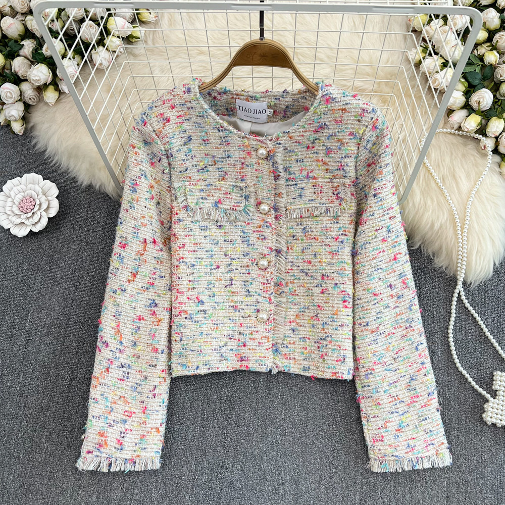 Радужная демисезонная плетеная куртка с круглым воротником, в стиле Шанель, в корейском стиле