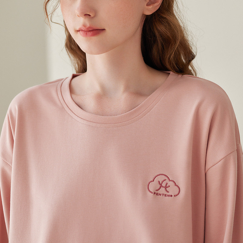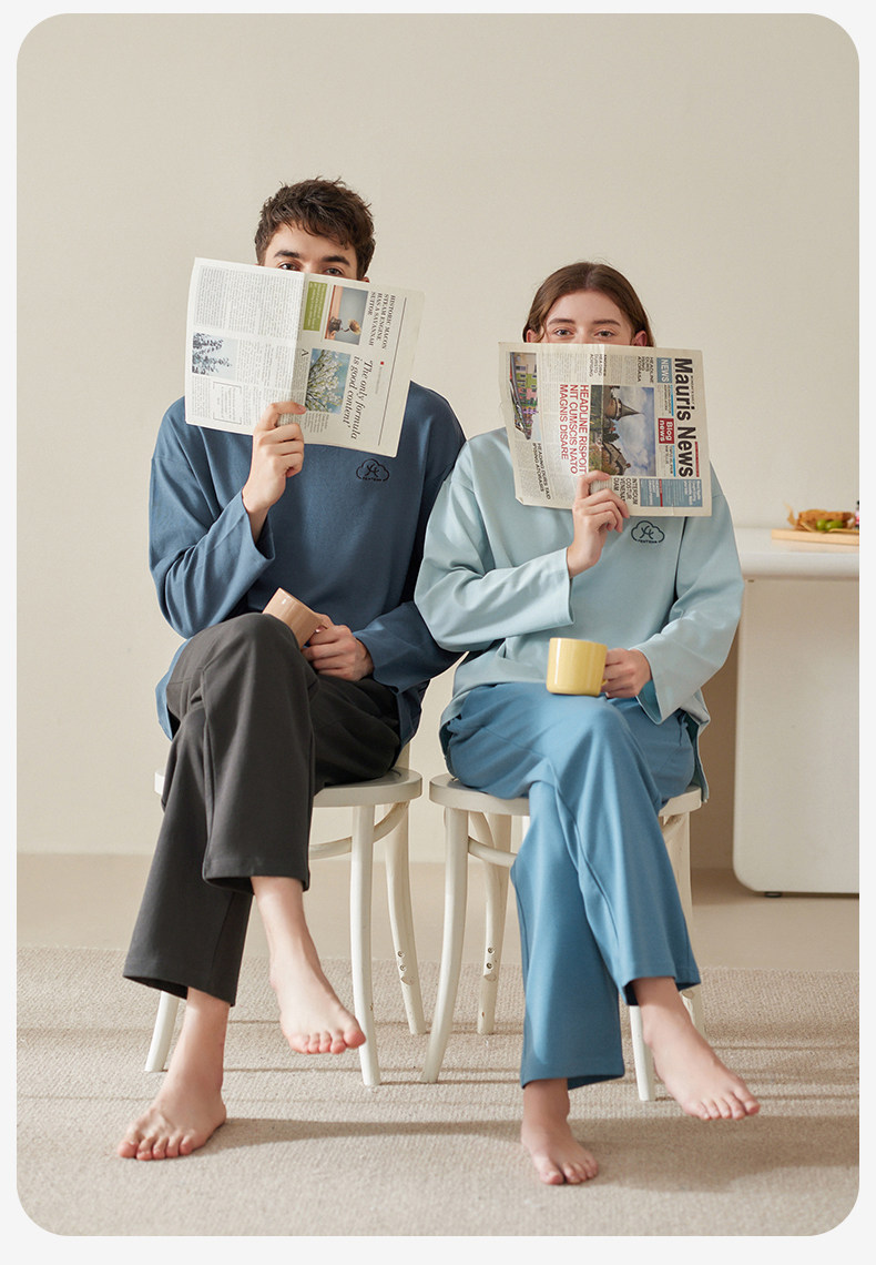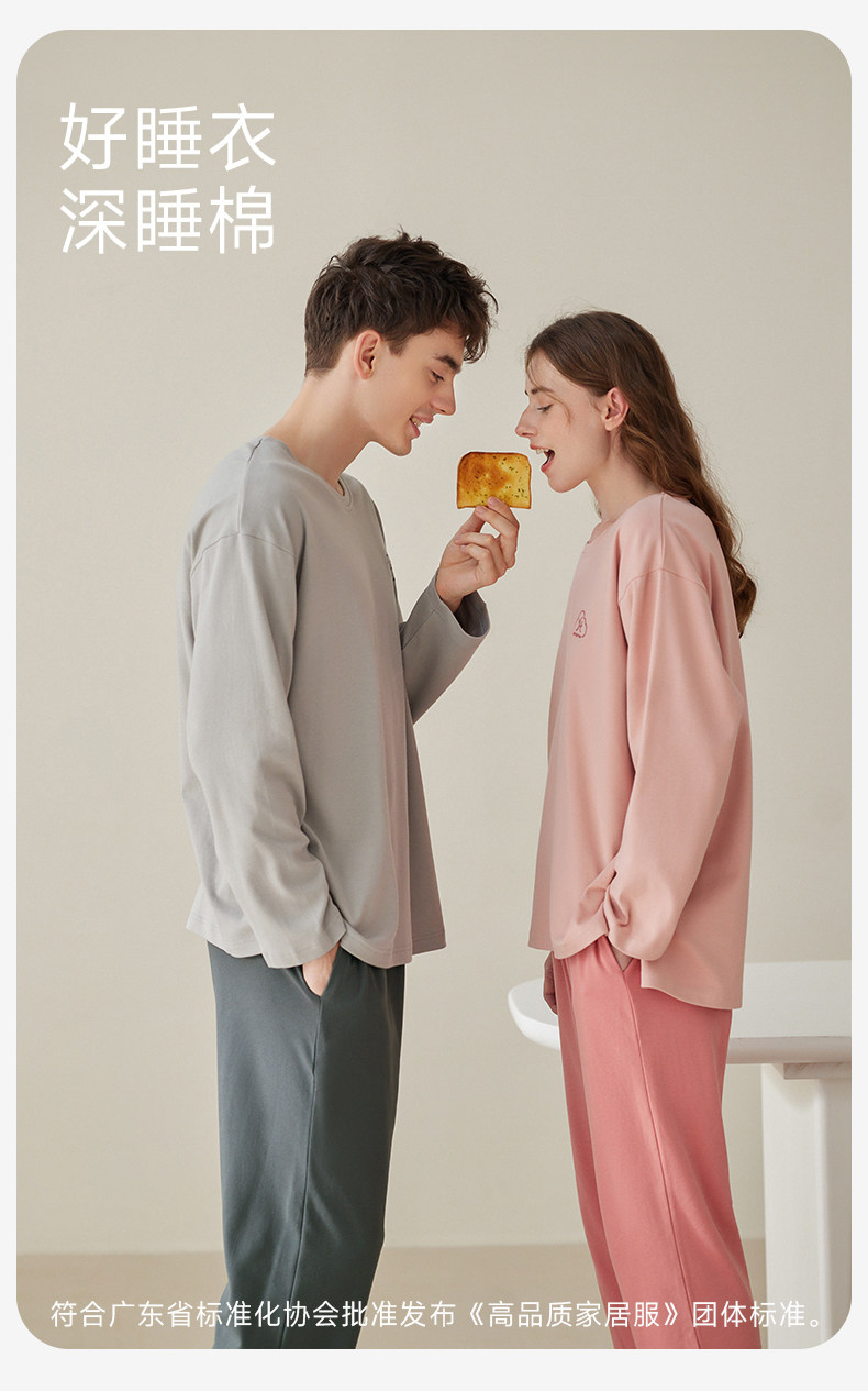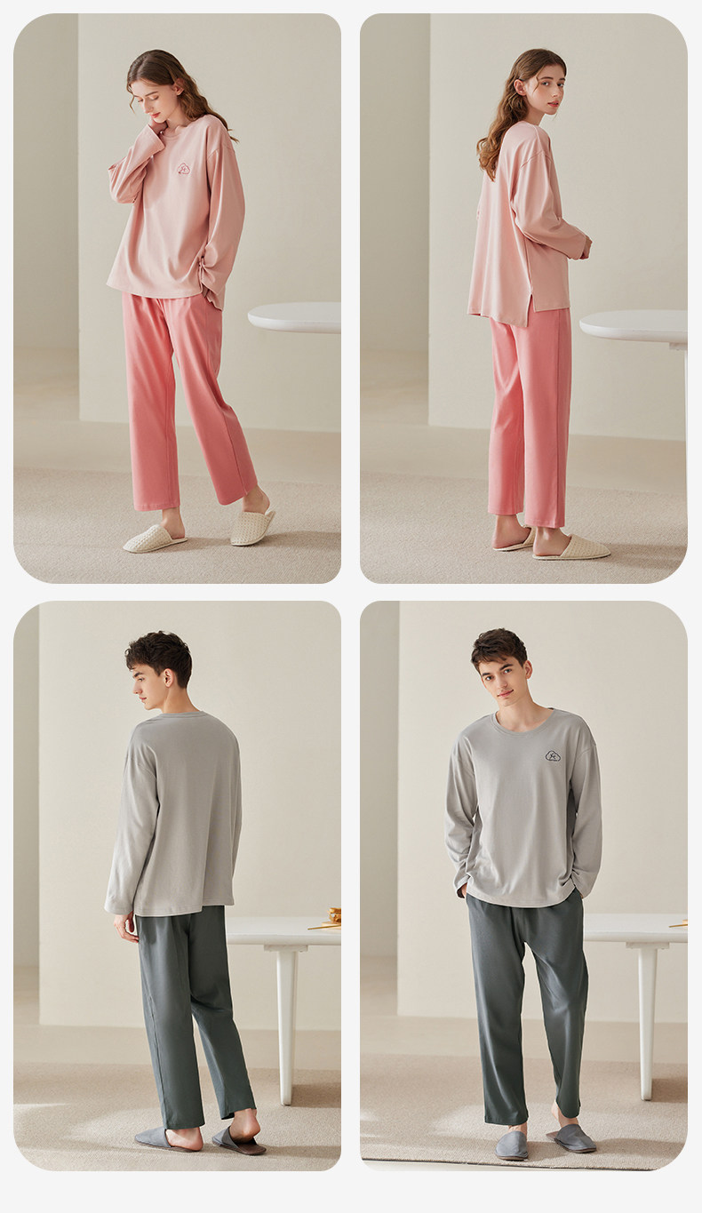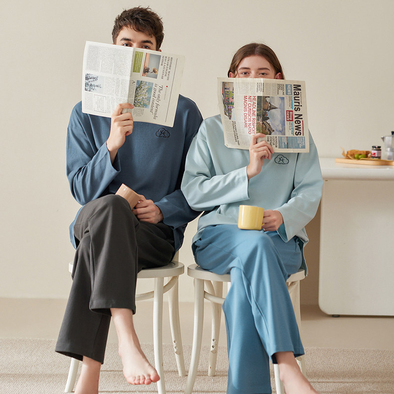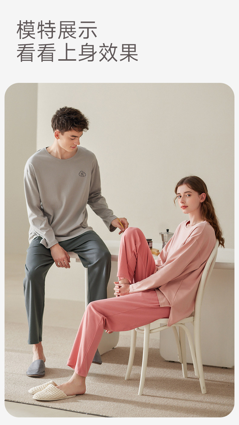 芬腾 Осенняя пижама, мужской хлопковый лонгслив с круглым воротником, комплект, для влюбленных, большой размер