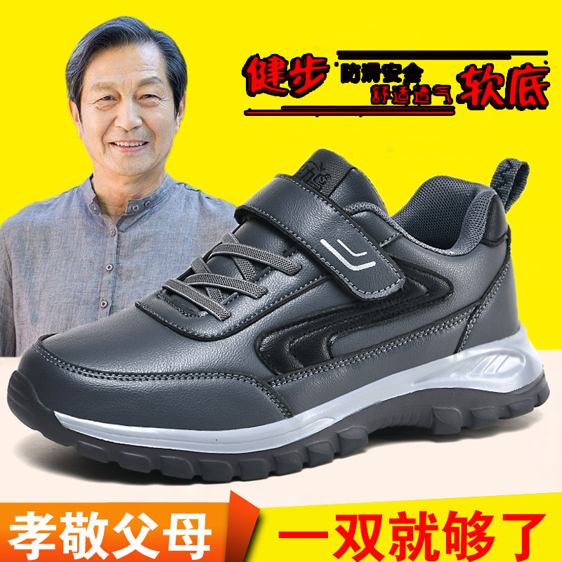 Прогулочная обувь для пожилых людей, мужская осенняя мягкая подошва, повседневная легкая нескользящая водонепроницаемая мужская обувь для пожилых пап среднего возраста, спортивная обувь