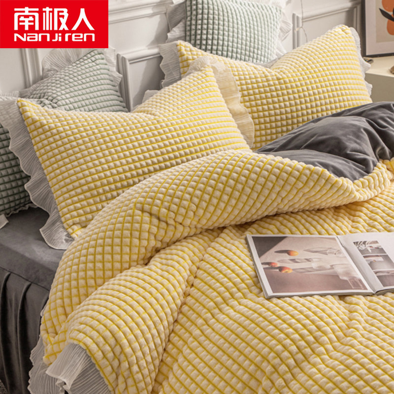 Зимний коралловый антистатический комплект, фланелевый флисовый пододеяльник, 4 предмета, увеличенная толщина, скандинавский стиль